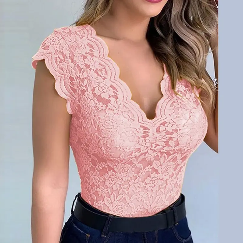 Женская кружевная майка без рукавов с V-образным вырезом, повседнев...