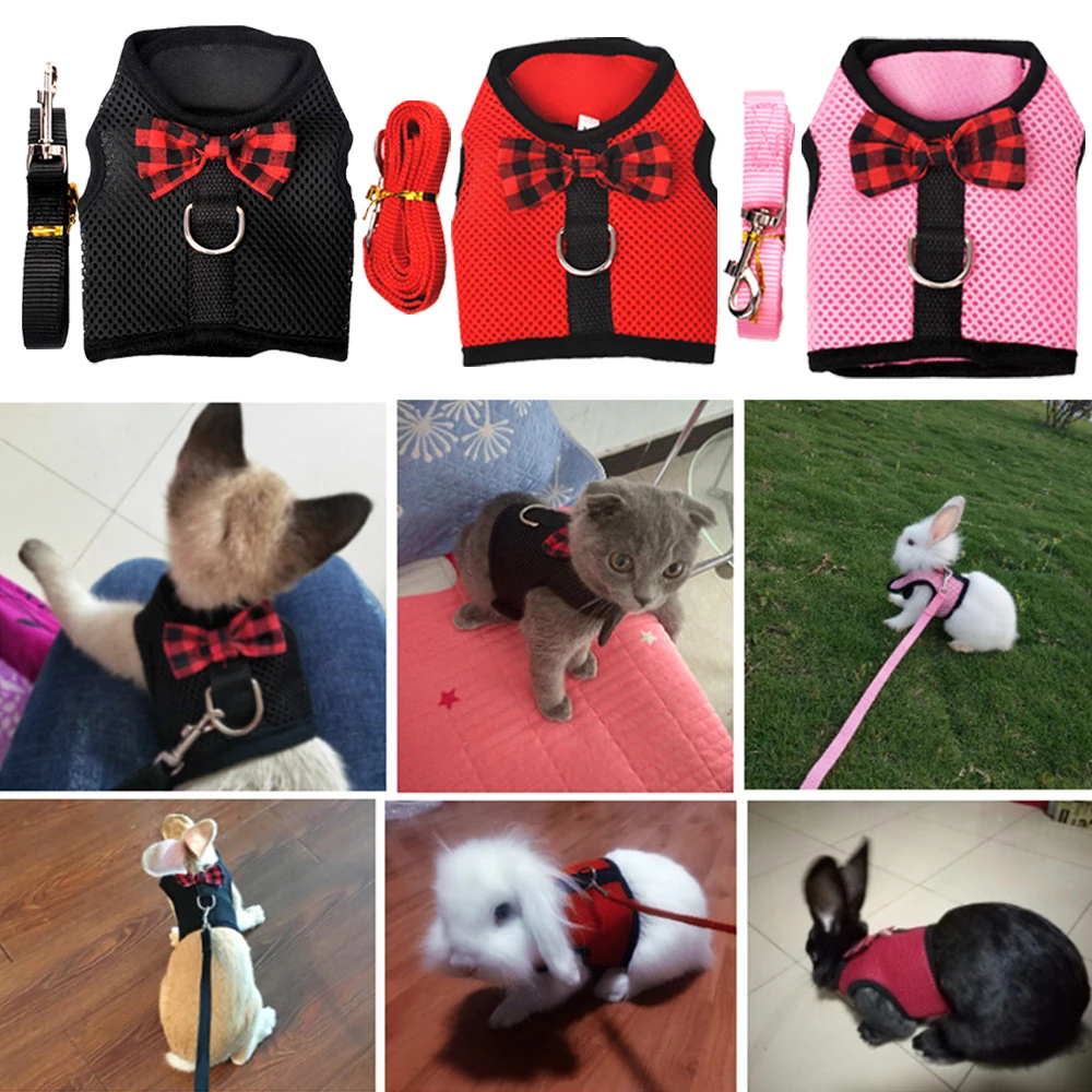 Ошейник для маленьких животных, Регулируемый мягкий поводок для домашних животных поводок для кролика жилет и поводок для собак для хорек свинки белка буксировочный трос