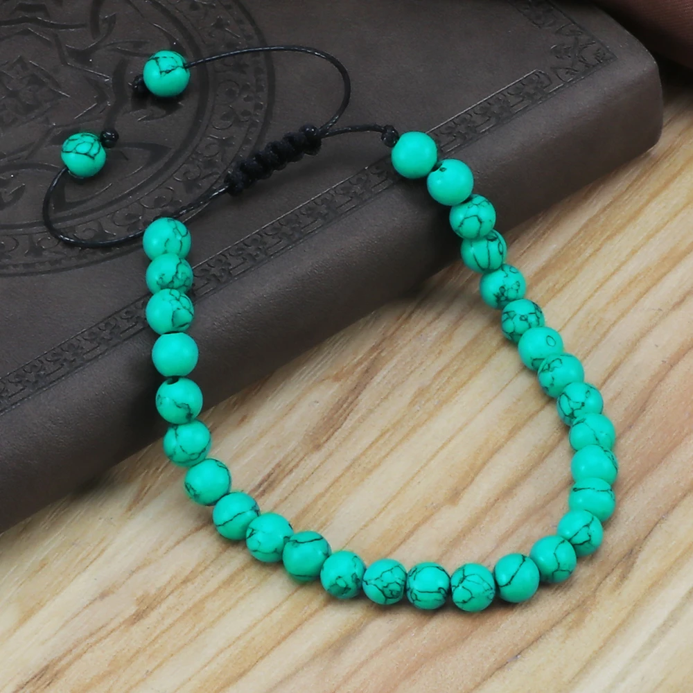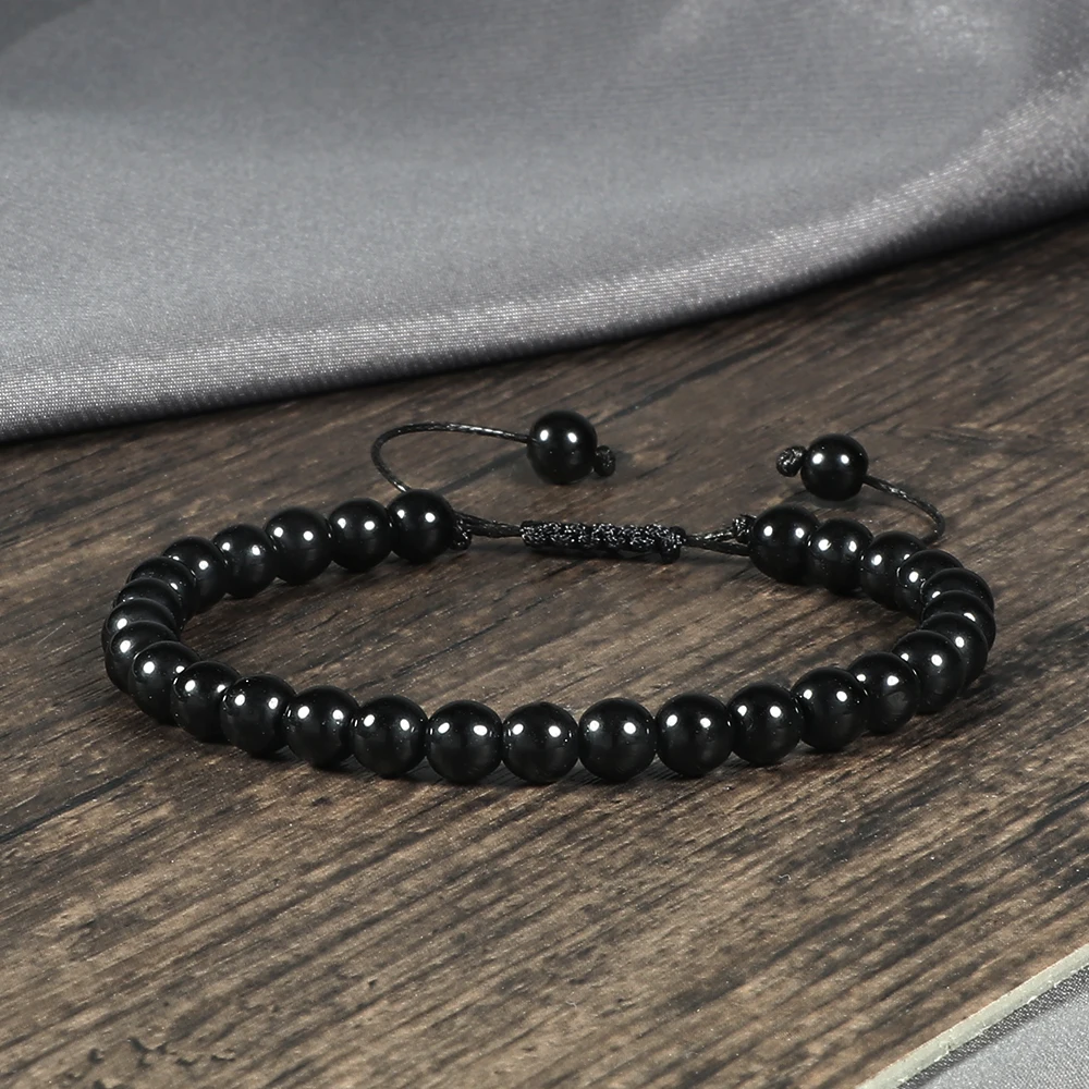 Плетеный браслет из браслеты с бусинами из камня лавы, 6 мм, с бусинами, регулируемый размер, ювелирные изделия