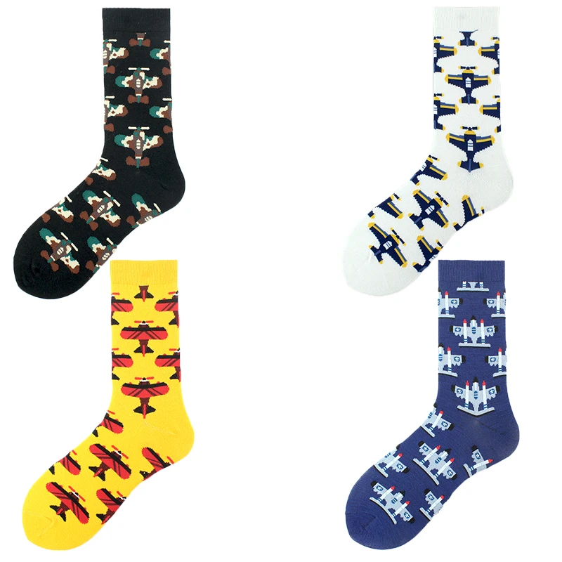 Женские носки из чесаного хлопка, повседневные, с мультяшным самолетом, весна-осень-зима