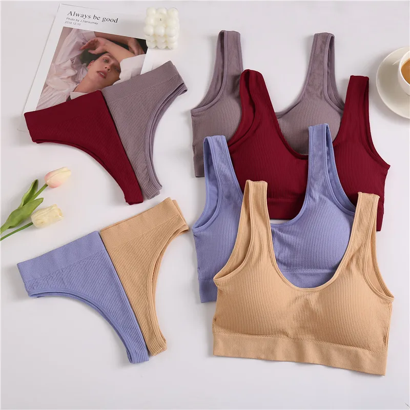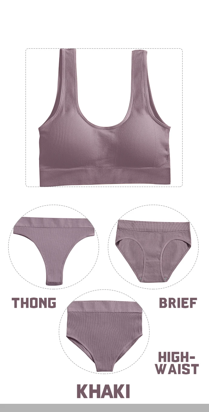 Комплект женского нижнего белья из мягкого однотонного дышащего бюстгальтера и трусиков с высокой талией