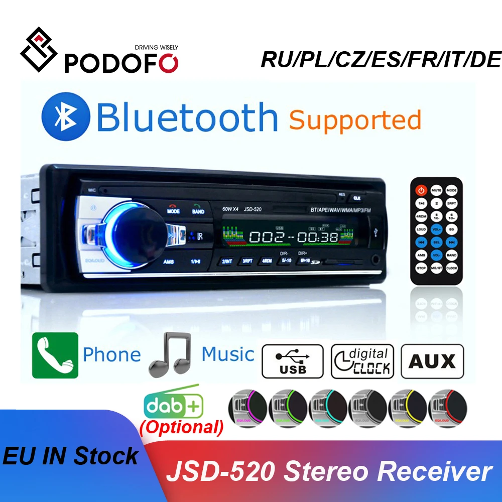 Podofo Bluetooth Авто Радио стерео радио FM Aux Вход приемник SD USB JSD-520 12 В в-тире 1 Дин MP3 мультимедийный плеер