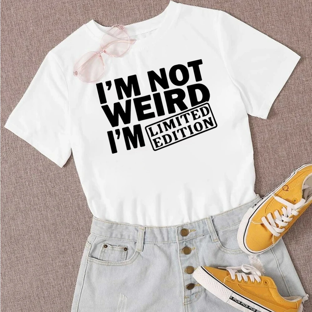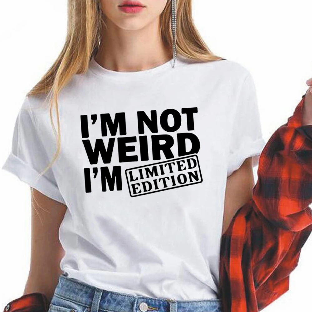 Женская Футболка с коротким рукавом, круглым вырезом и надписью Я не странно