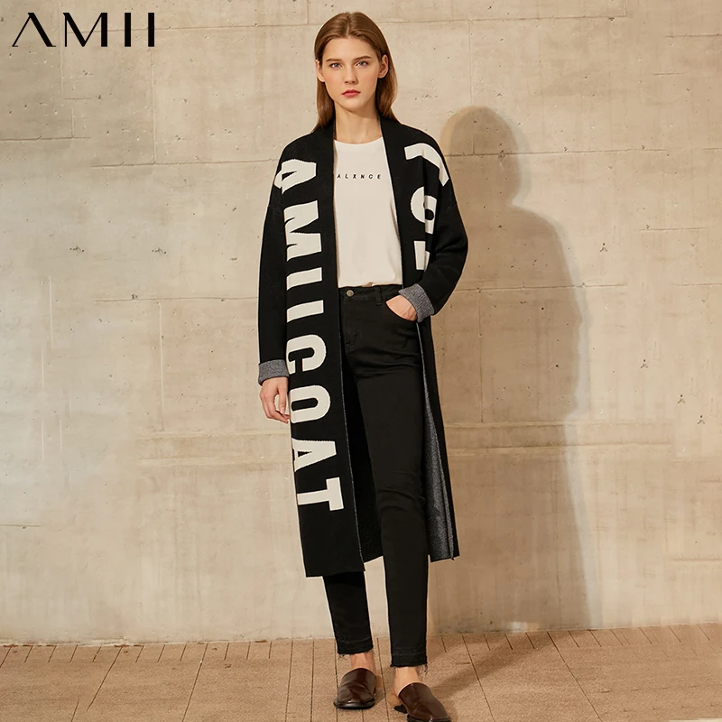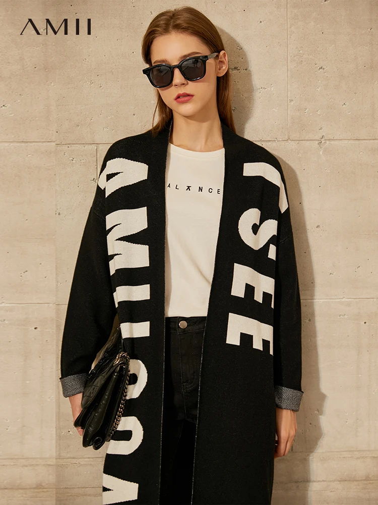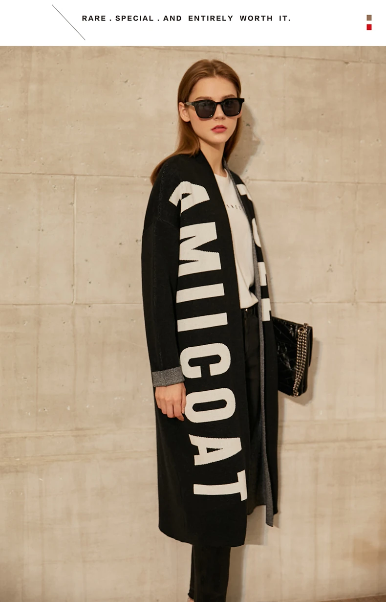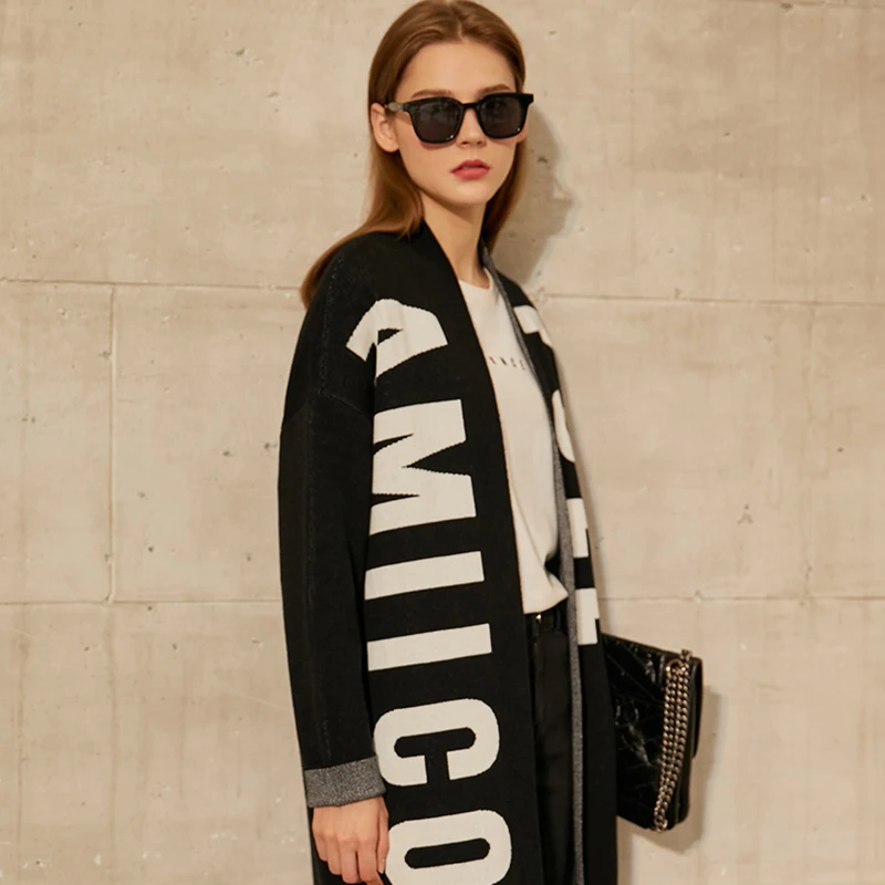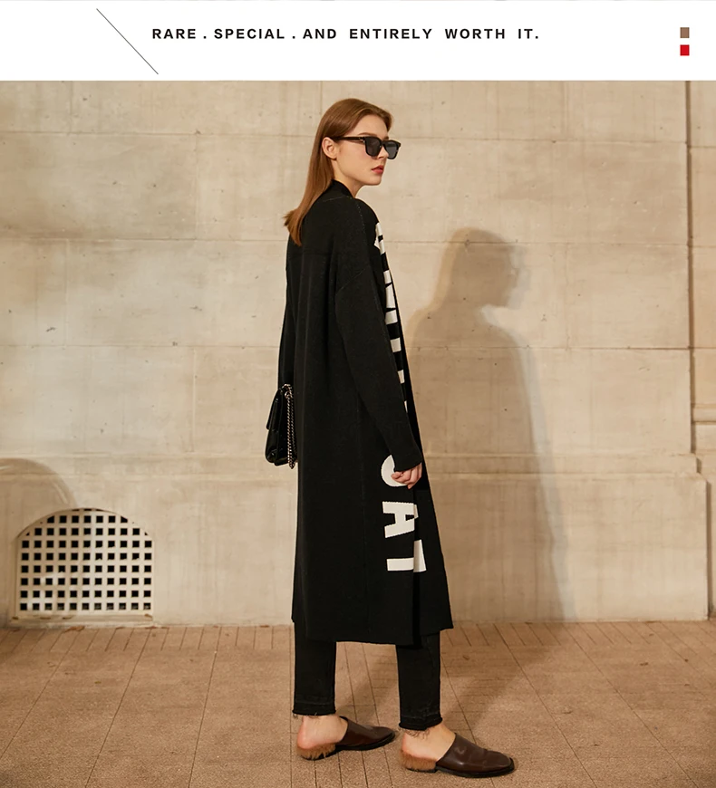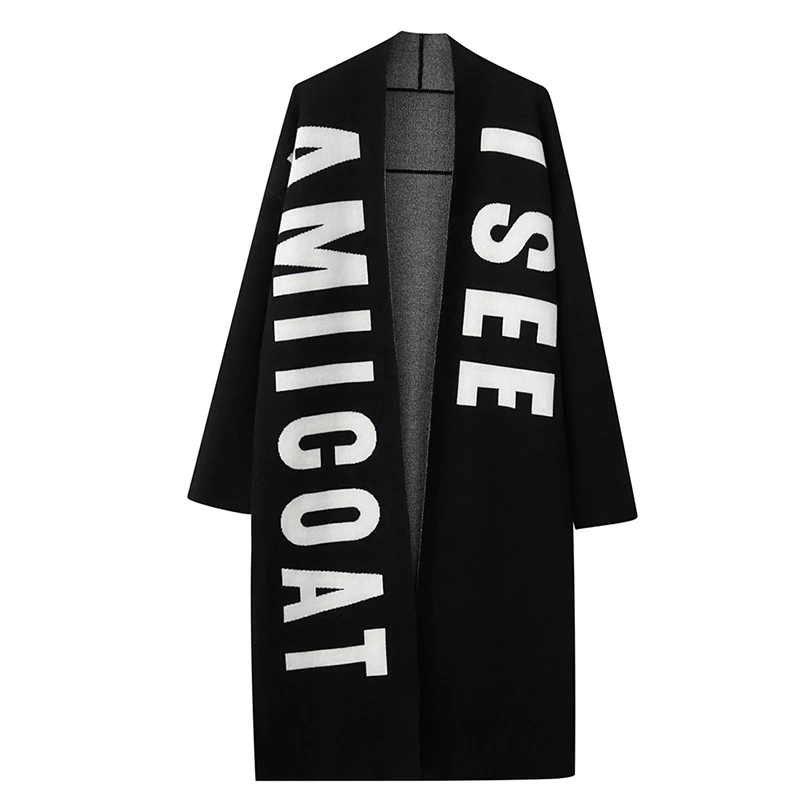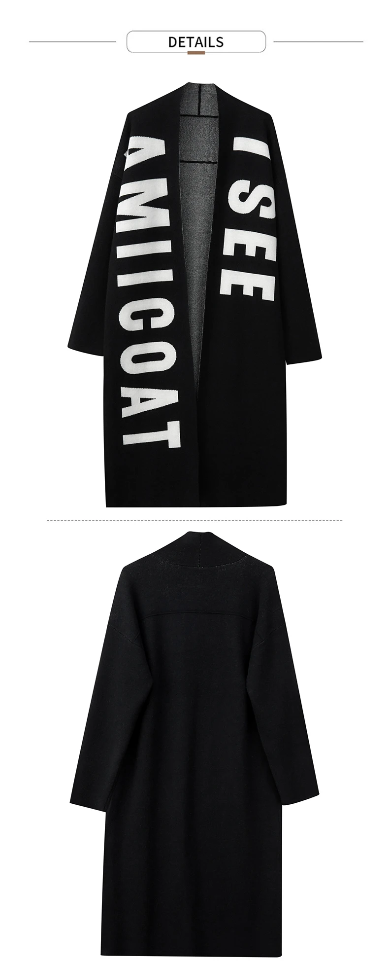Кардиган женский трикотажный до икры, с буквенным принтом, свободный, Осень-зима, 12070578