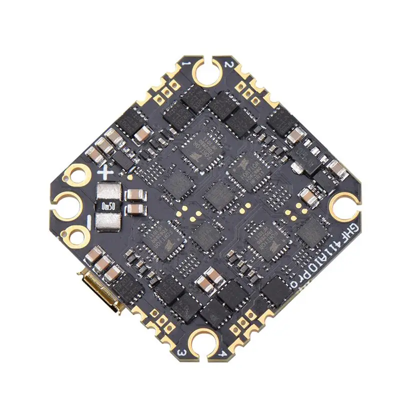 Название бренда: JHEMCU Модель: GHF411AIO Pro Наименование товара: F4 OSD Контроллер полета встроенный 25A/35A 4in1 ESC Размер: 32,5x32,5мм Монтажное отверстие: 25.5x25.5мм Вес: 7,3 г CPU: STM32F411CEU6 (100 МГц) MPU: MPU6000 (SPI) Прошивка: Betaflight JHEF411 Встроенный Betaflight OSD (AT7456E) BEC выход (два): 9V/2A, 5V2.5A USART: UART1,UART2 Приемник; SBUS,IBUS,DSM2,DSMX ,TBS (UART2) Черный ящик: 8 Мб Встроенный датчик тока Поддержка WS2812 светодиодный Входное напряжение: 2-6S Lipo Ток ESC: 25A/35A Прошивка: BLHELI_S G-H-30.HEX