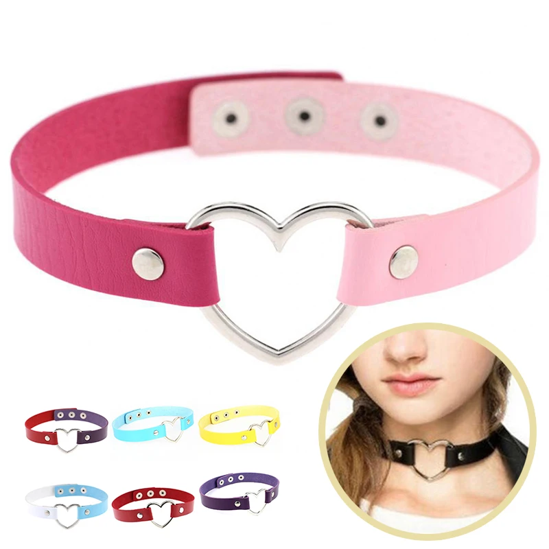 Кожаный чокер с заклепками в форме сердца для мужчин и женщин, модное крутое ожерелье в стиле панк и готика, ювелирные изделия, аксессуары