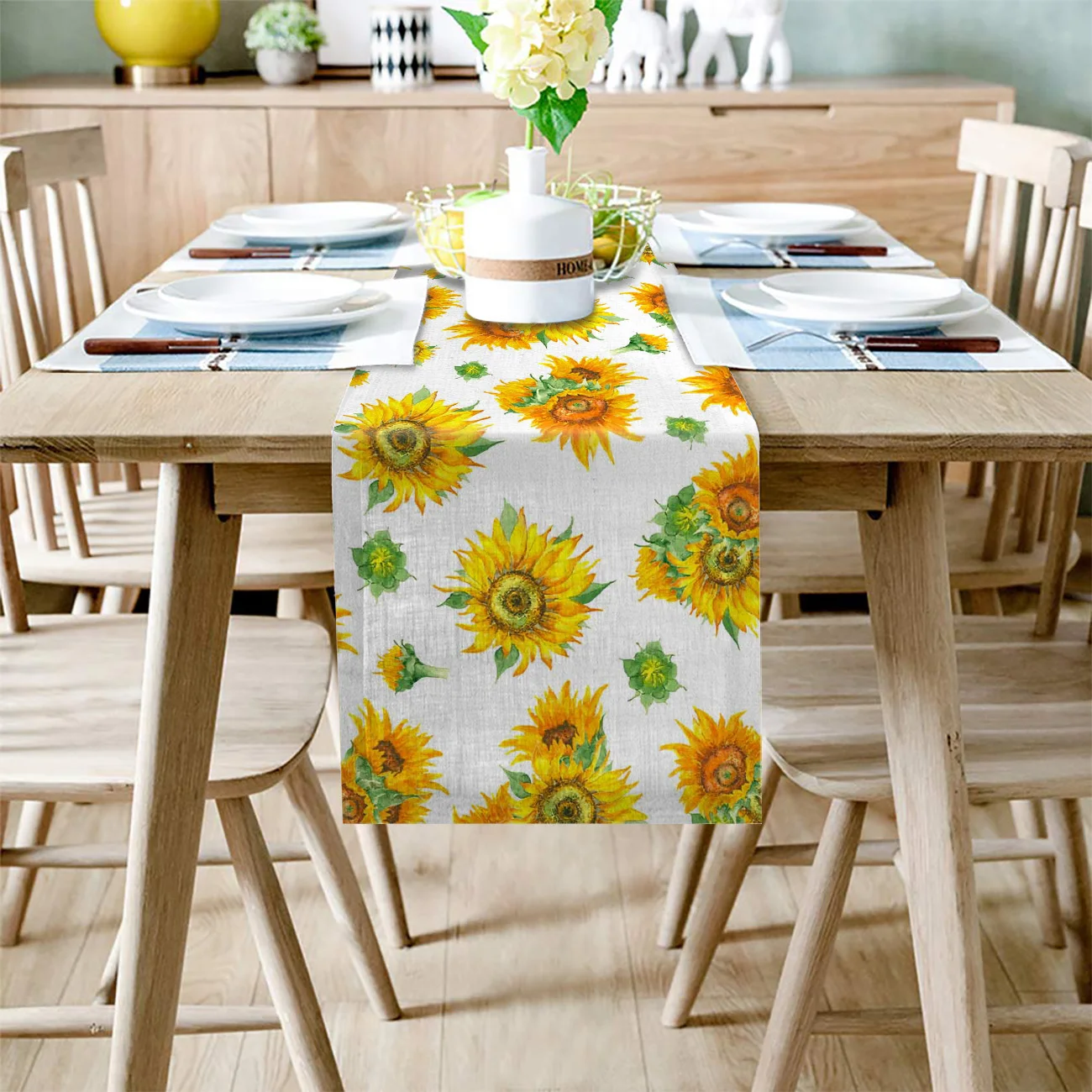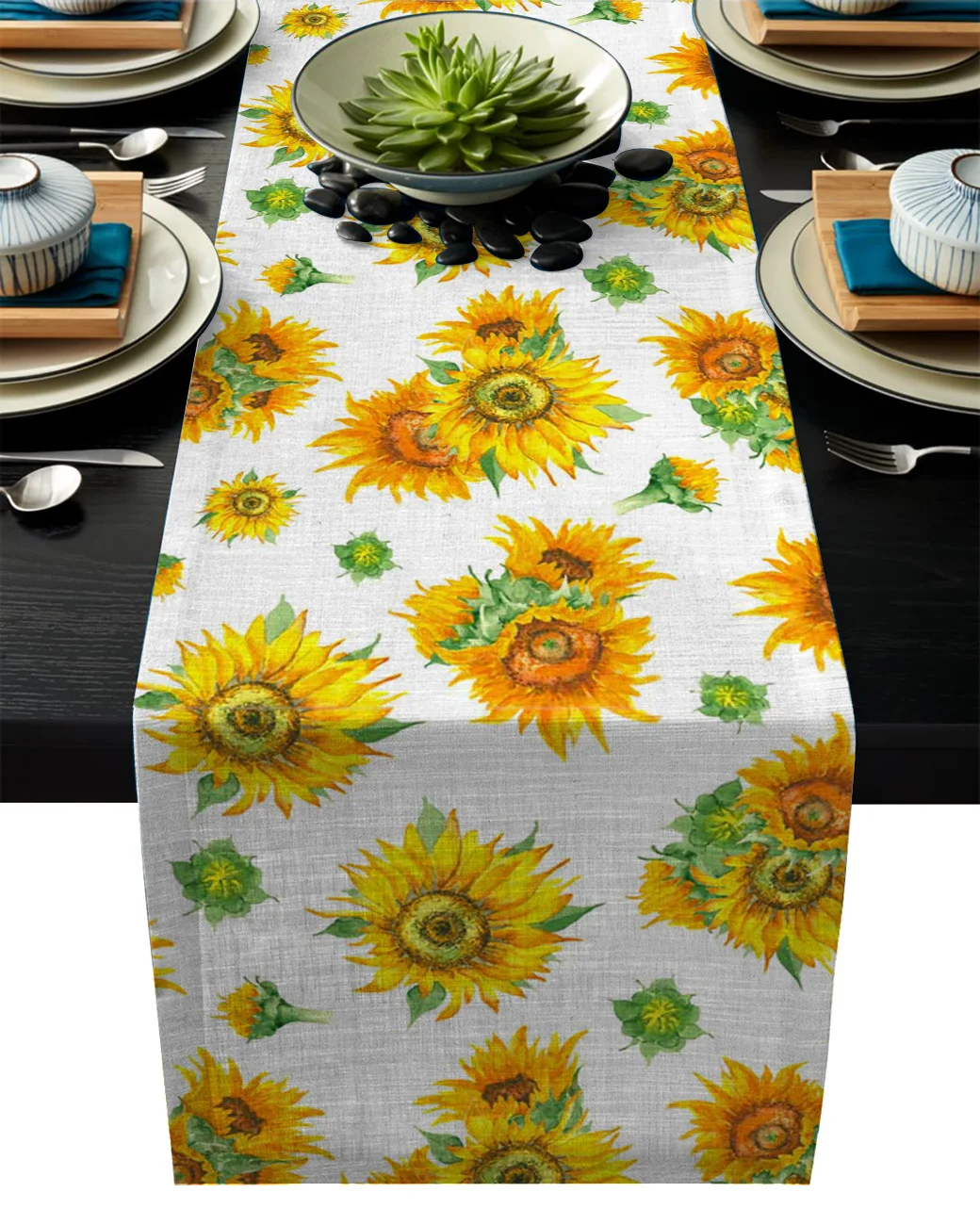 Скатерть с подсолнухами, желтая настольная дорожка, украшения для д...