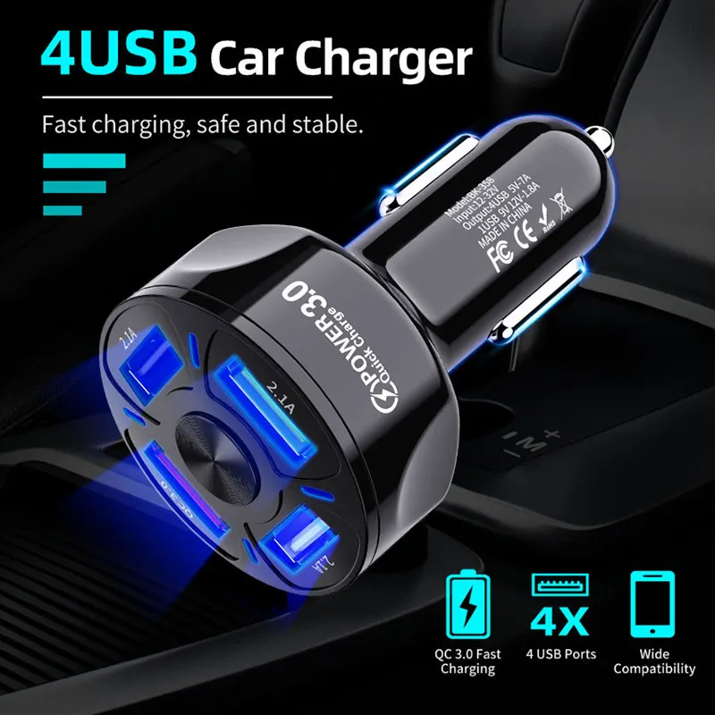 Автомобильное зарядное устройство с 4 USB-портами, быстрая зарядка ...