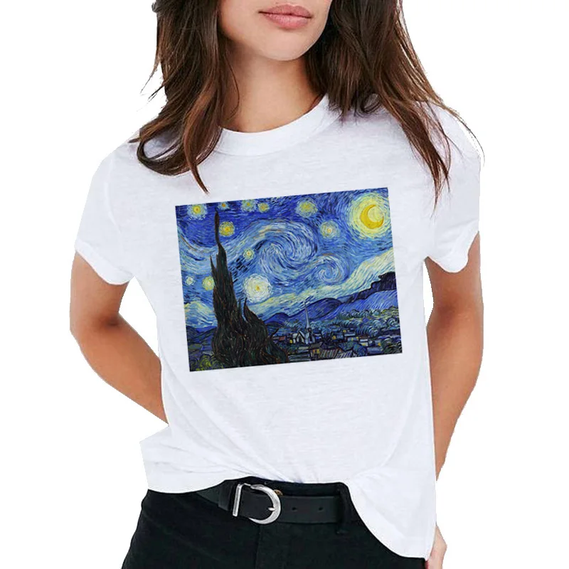 Женская футболка с принтом Ван Гога, Повседневная Уличная футболка с графическим принтом, футболка в стиле Харадзюку, 2021