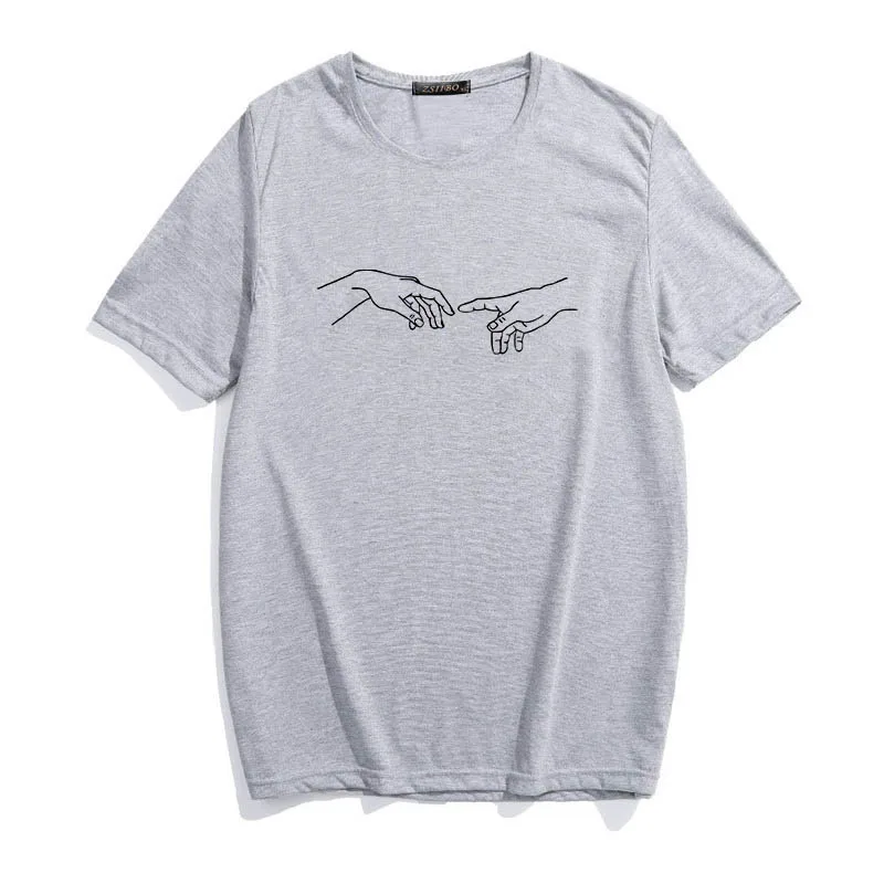 Женская футболка с принтом Микеланджело, руки творения Адама, черны...