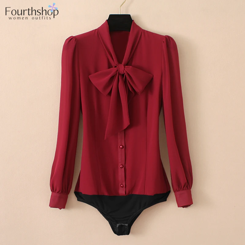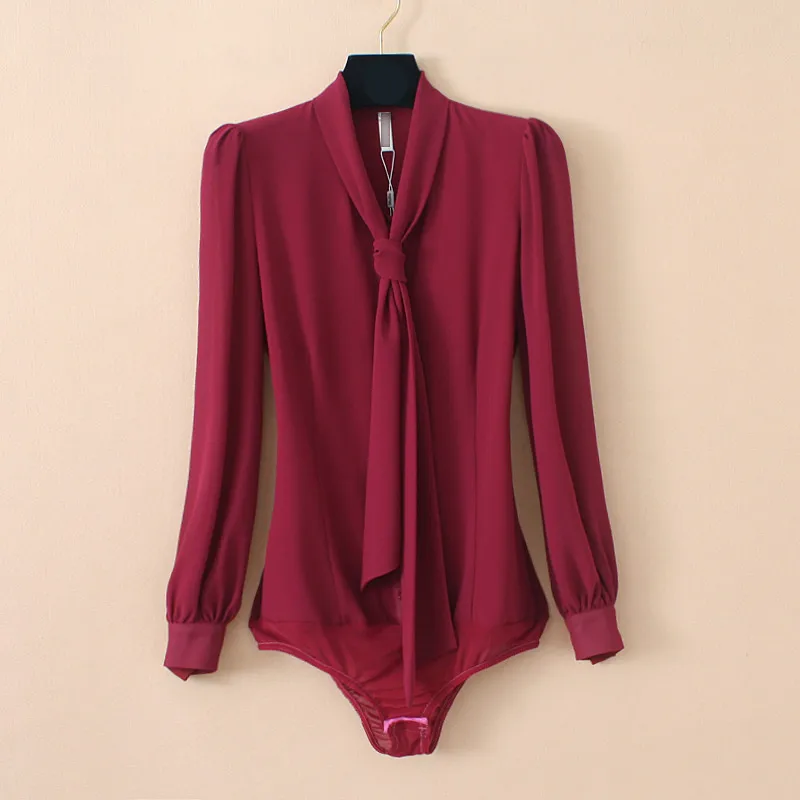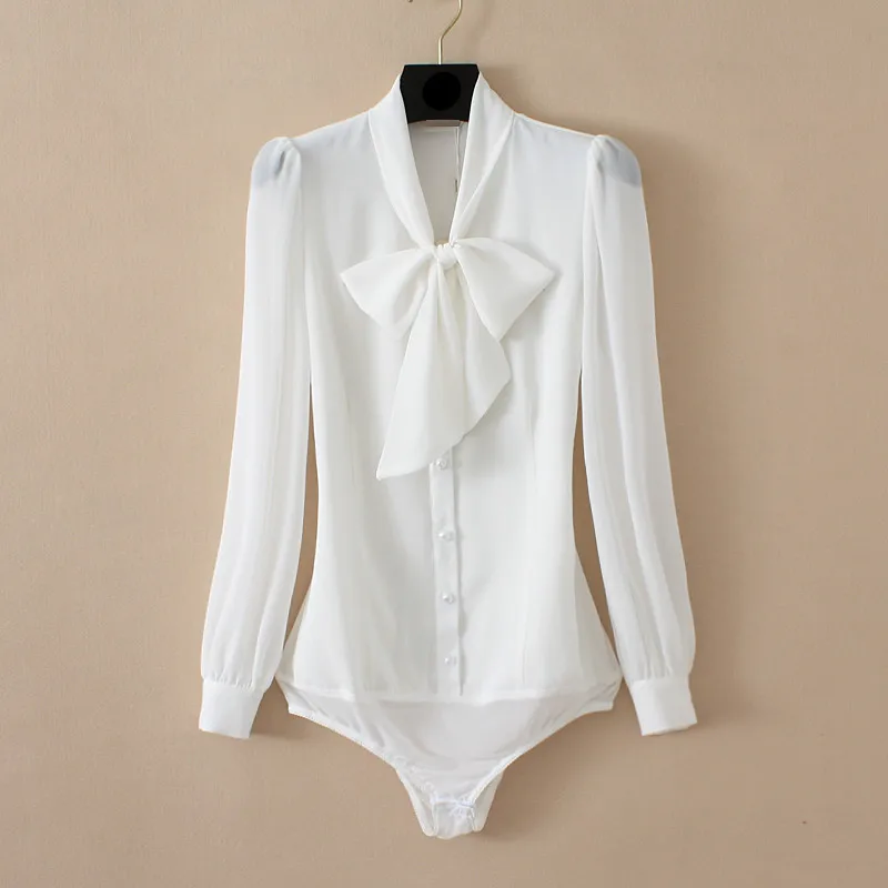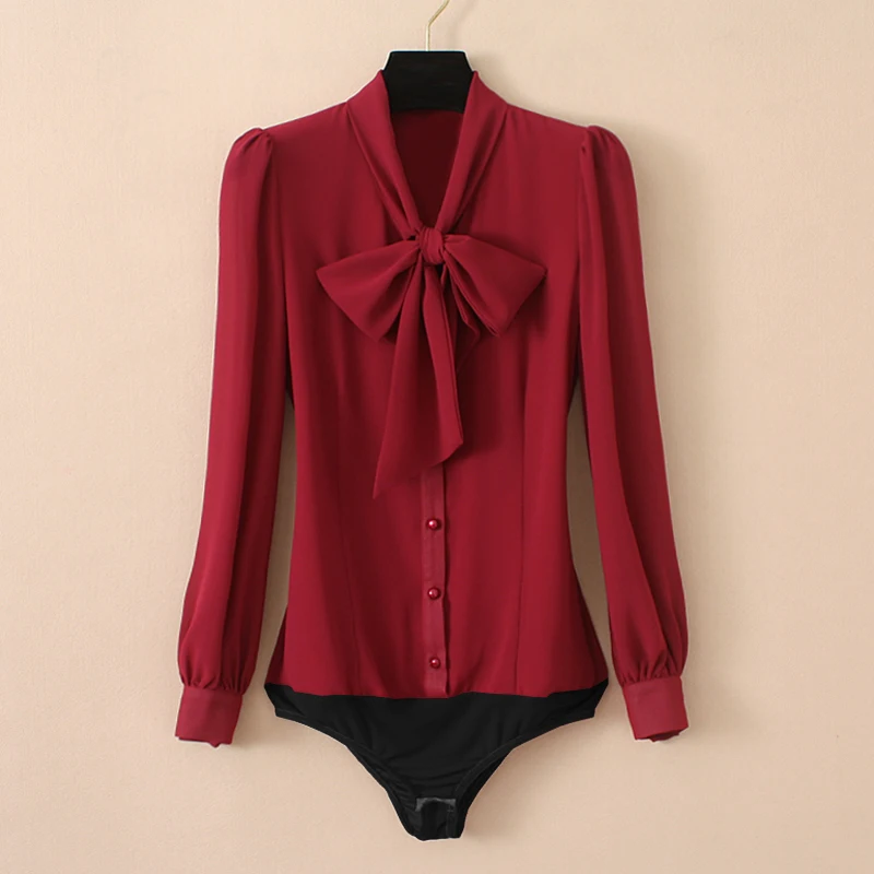 Комбинезон женский шифоновый с длинным рукавом-фонариком, элегантный топ с бантом на воротнике, Офисная формальная рубашка для работы, 2020