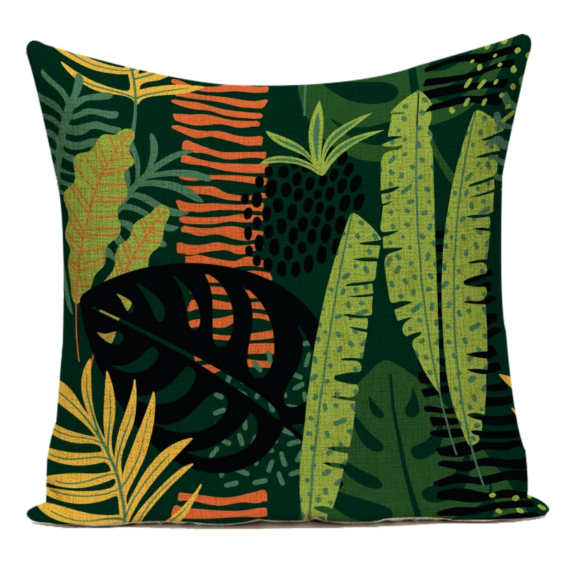 Декоративные подушки из полиэстера, тропические зеленые растения, л...