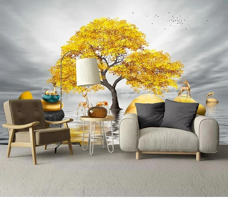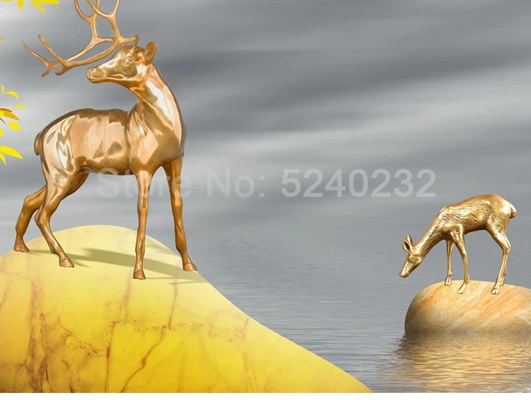 Настенные росписи 3D на заказ, большие золотые обои с изображением лося, Современное креативное украшение для гостиной, спальни, дивана, фотообои