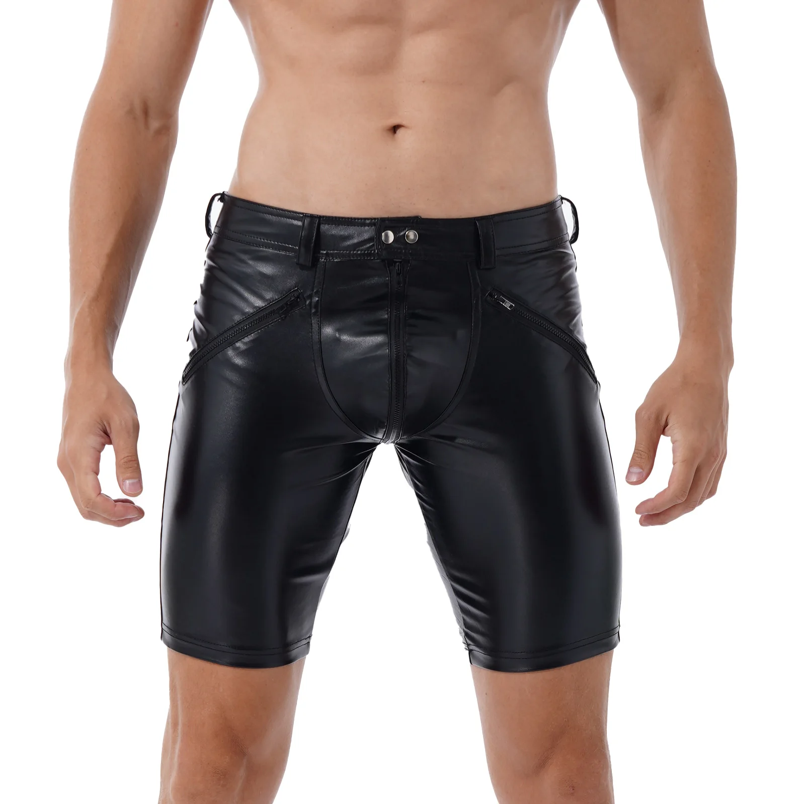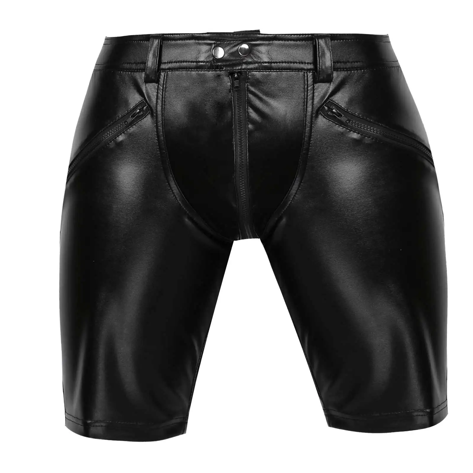 Мужские повседневные обтягивающие шорты из лакированной кожи, модные обтягивающие шорты с застежкой-молнией спереди и кнопками, шорты для бега в тренажерном зале