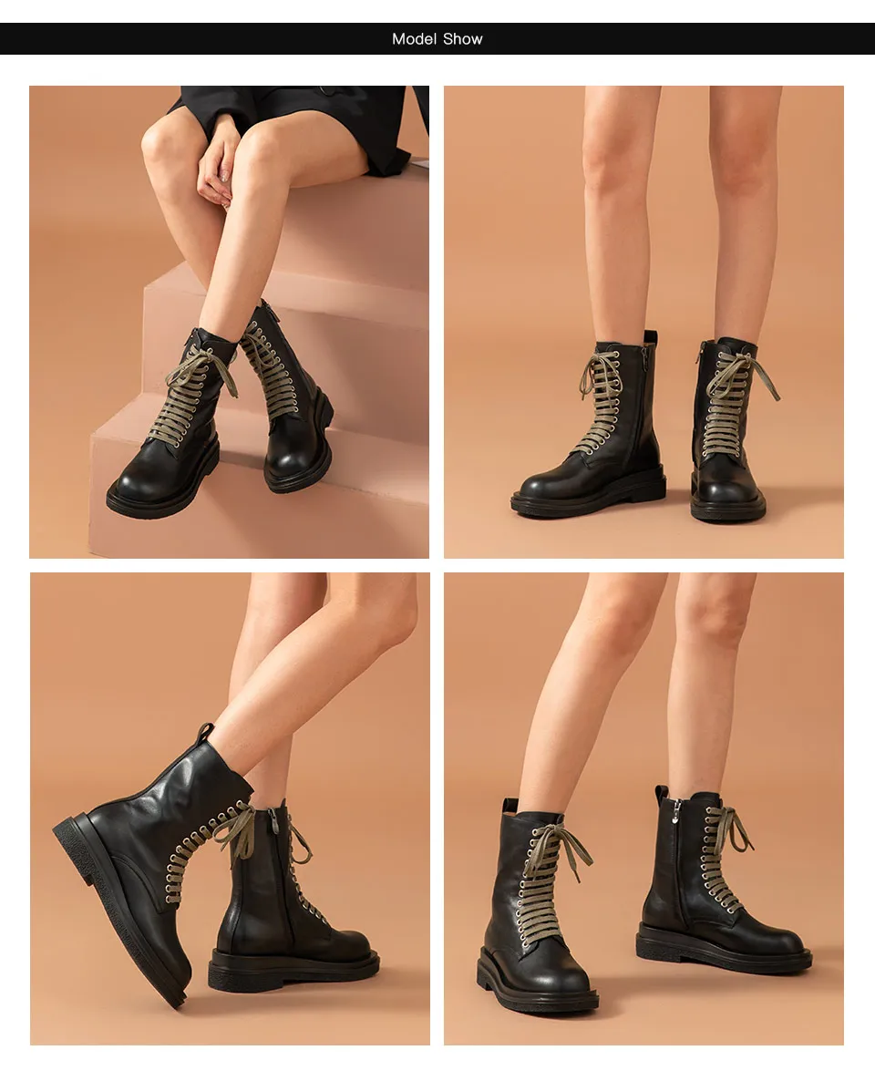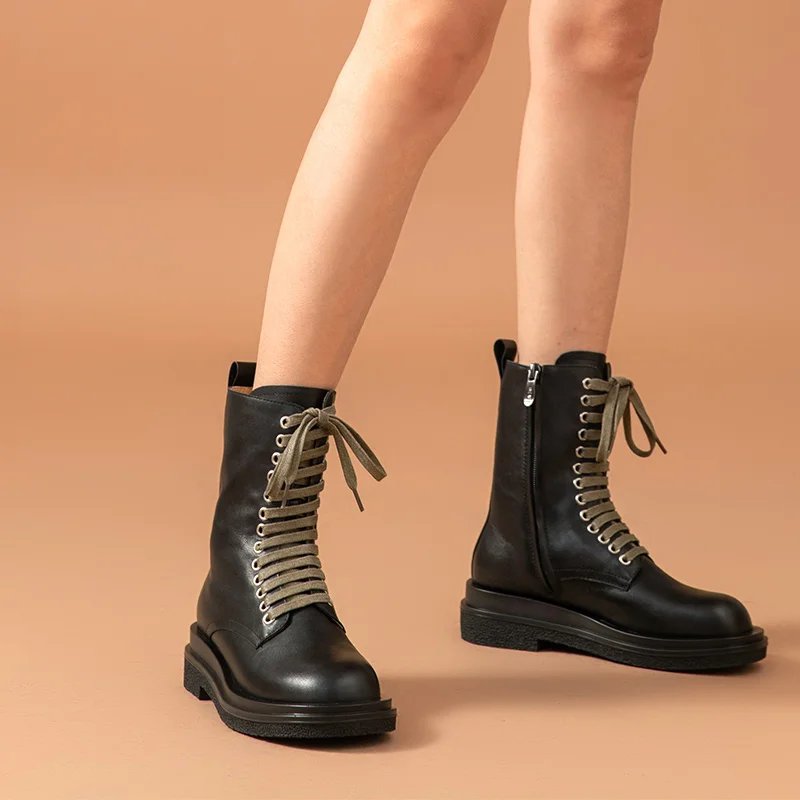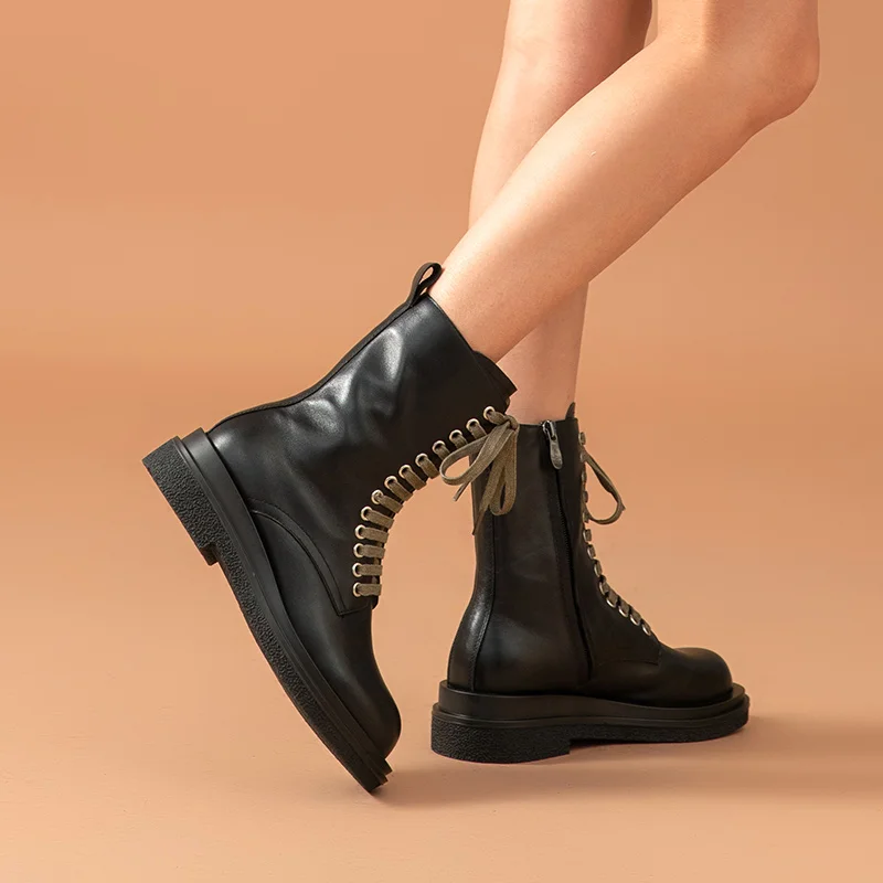 Ботильоны BeauToday женские из бычьей кожи, на шнуровке, с боковой молнией, на платформе, ручная работа, 03516