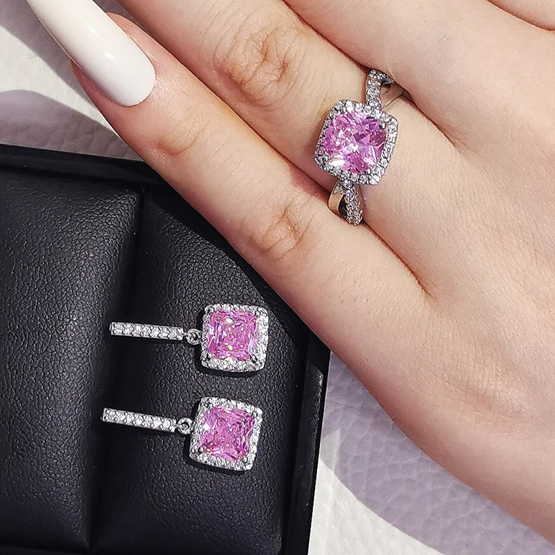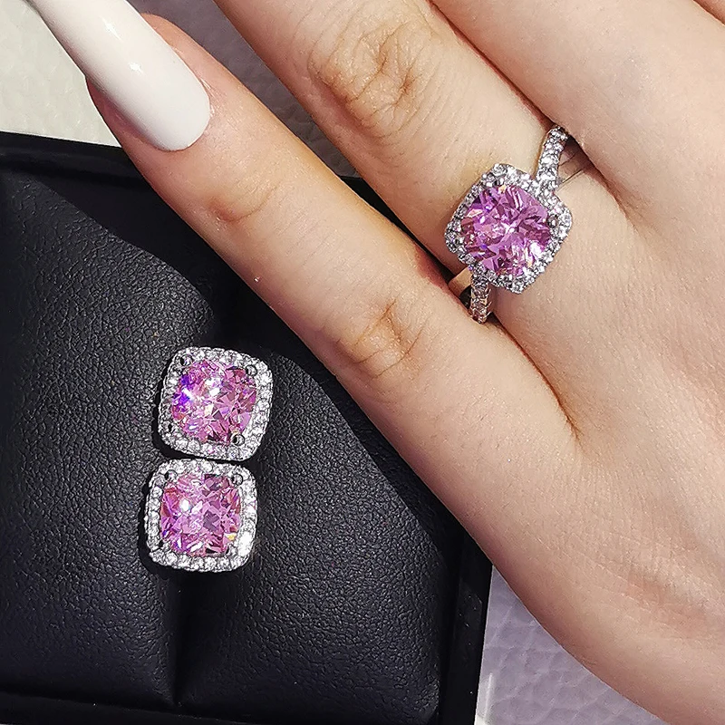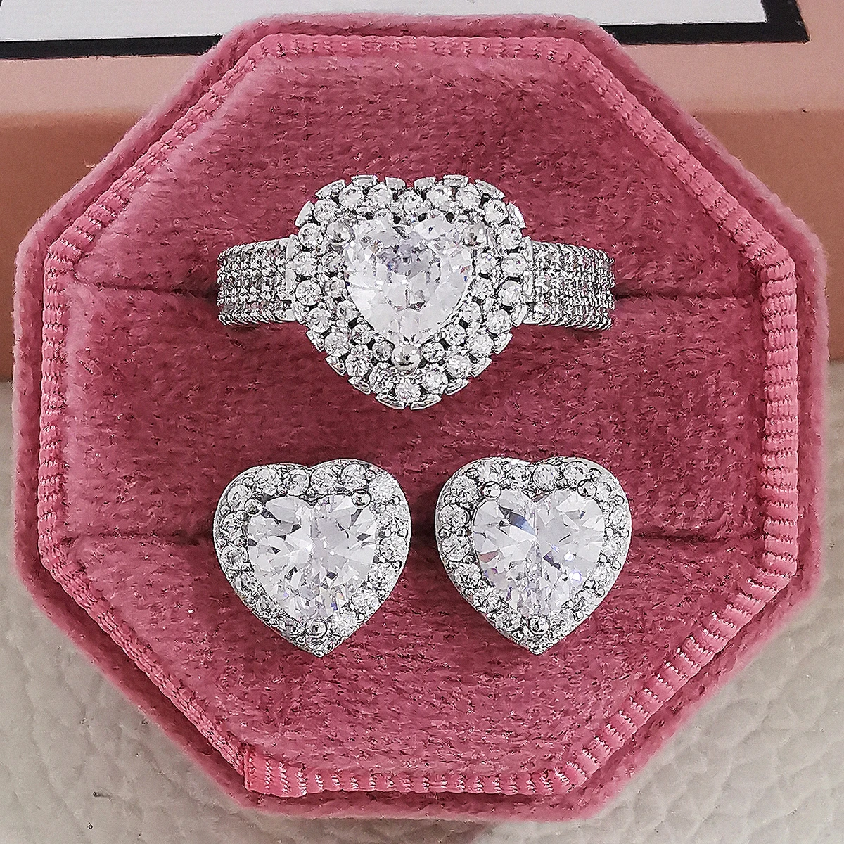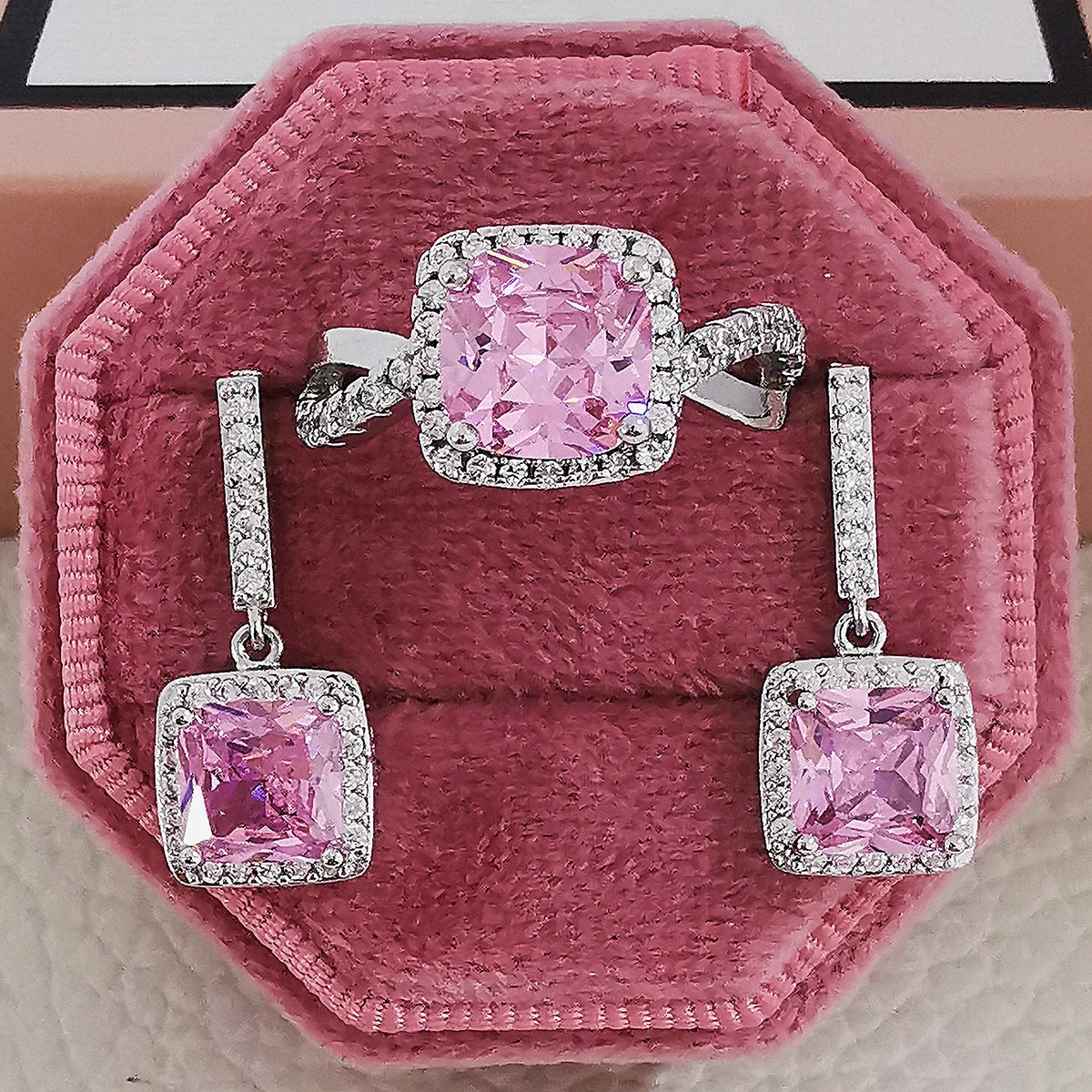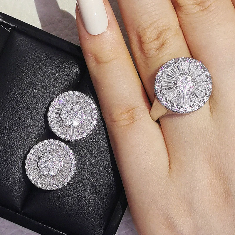 Новое поступление 2022, роскошный комплект ювелирных изделий из 2 предметов серебряного цвета с фианитом в Дубае, кольцо и серьги для женщин, ювелирные изделия для свадебной вечеринки, подарок для женщин J5968