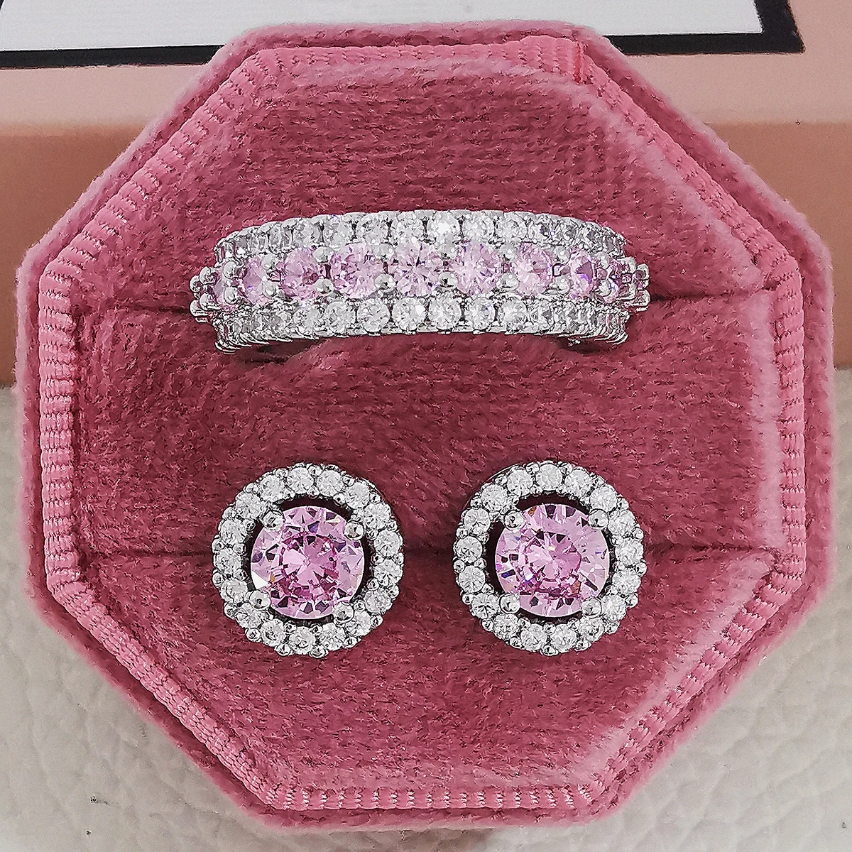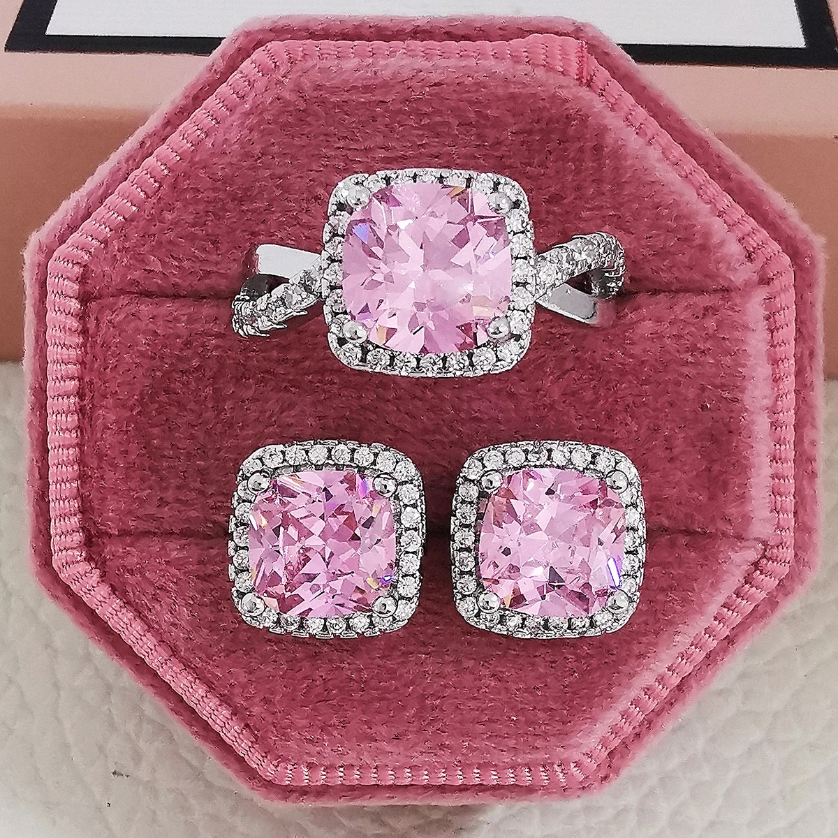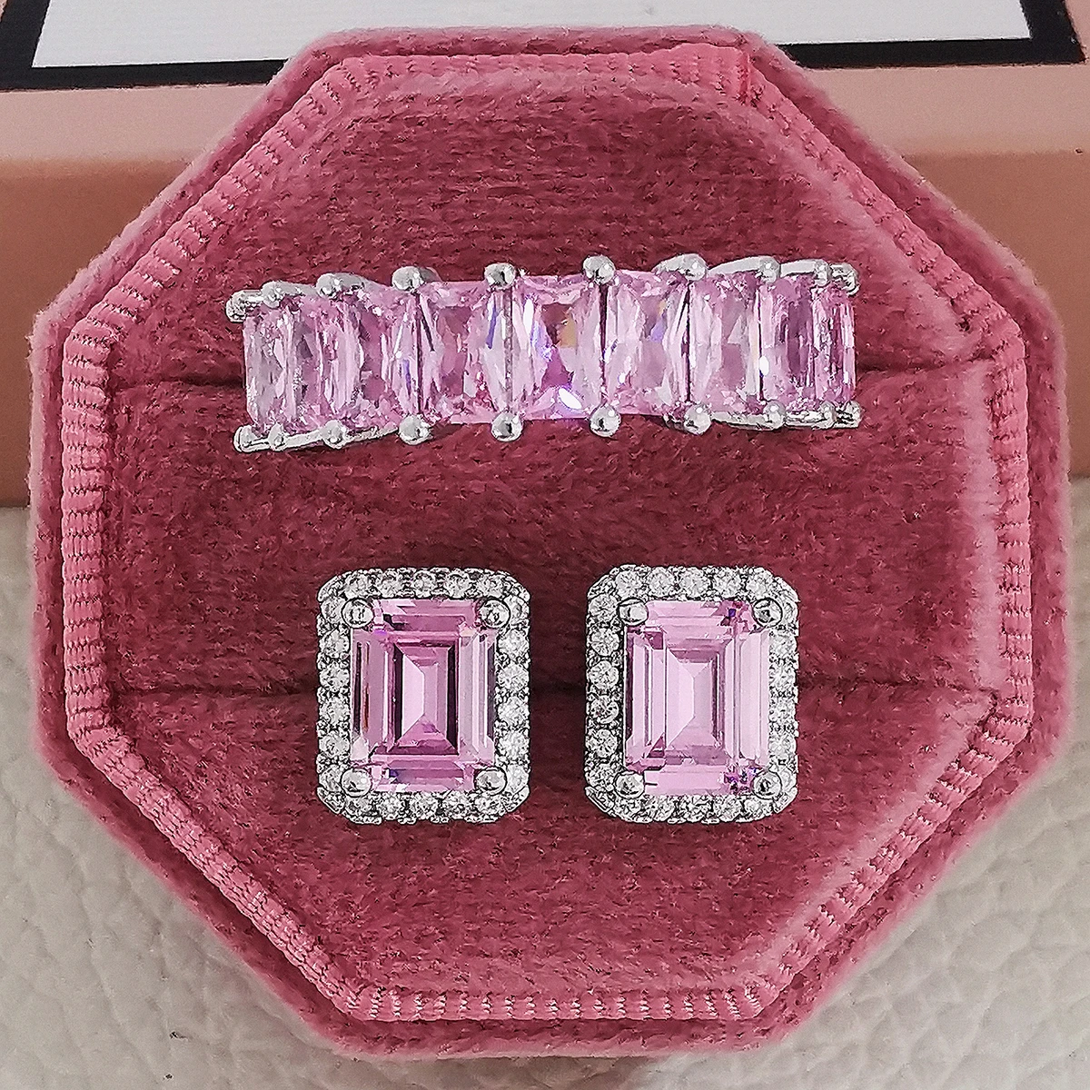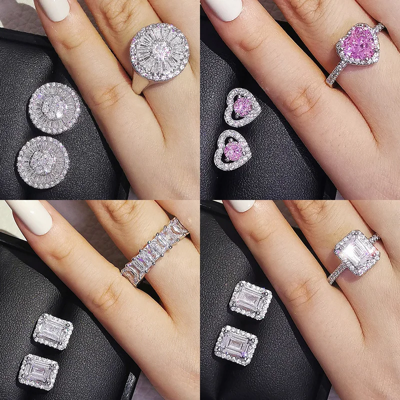 Новое поступление 2022, роскошный комплект ювелирных изделий из 2 предметов серебряного цвета с фианитом в Дубае, кольцо и серьги для женщин, ювелирные изделия для свадебной вечеринки, подарок для женщин J5968