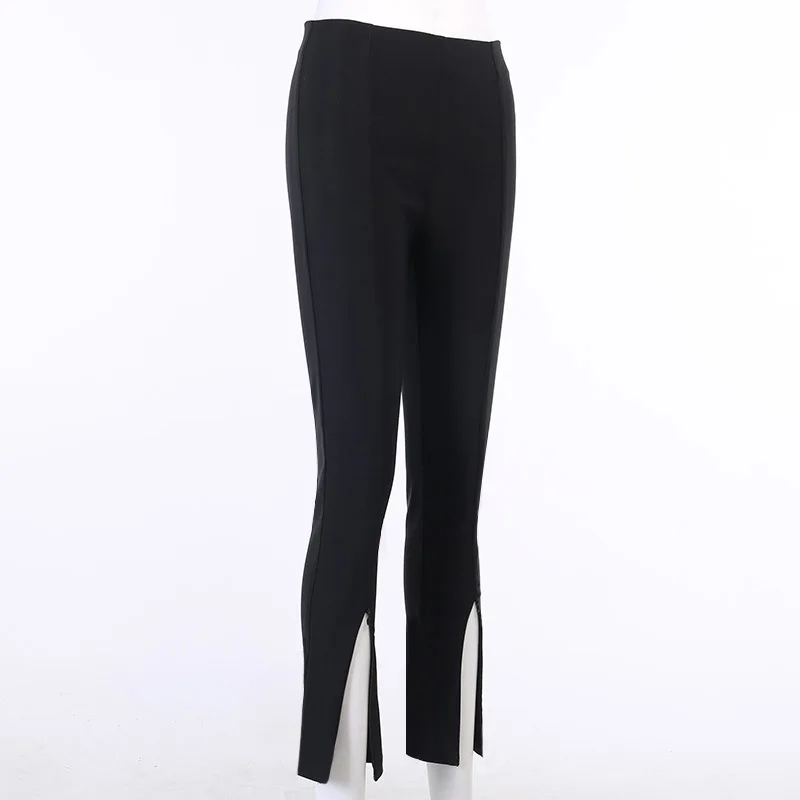 Осень 2020, облегающие Женские брюки, однотонные длинные брюки с высокой талией, леггинсы, повседневные леггинсы на молнии с разрезом