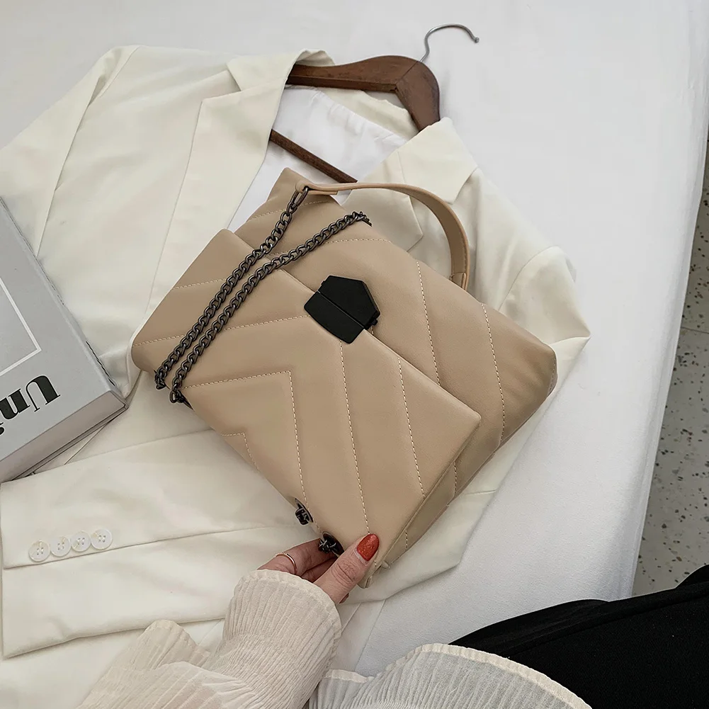 Сумка-мессенджер женская из искусственной кожи, с ручкой сверху и цепочкой