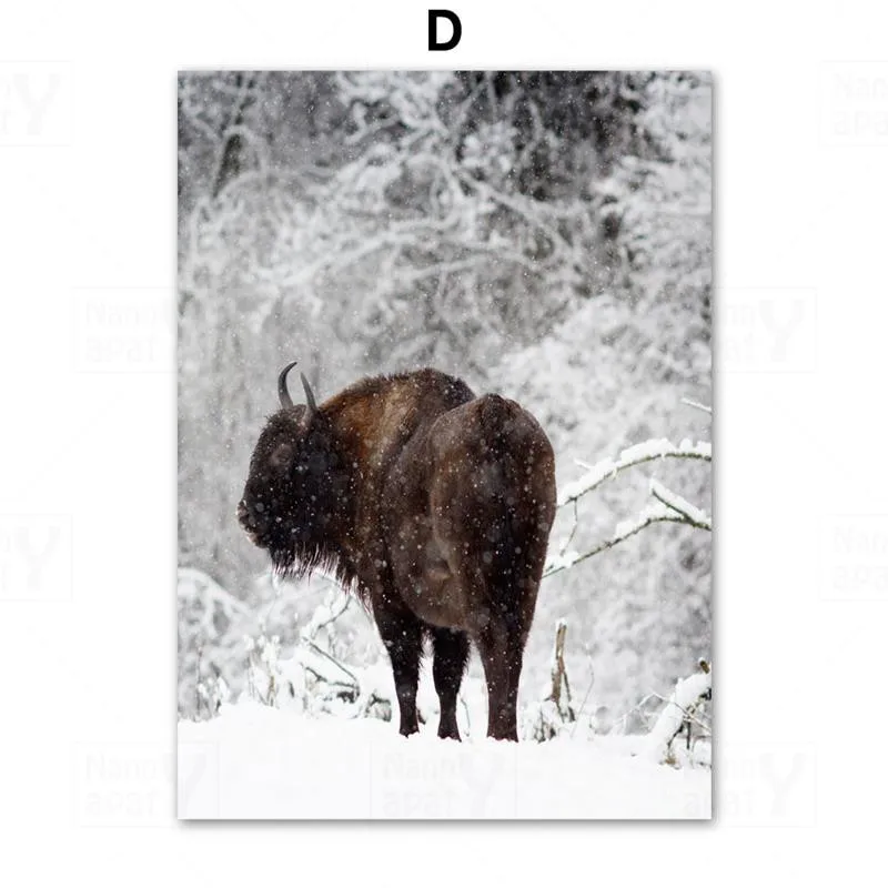 Настенный постер с изображением пейзажа леса, хижины, яка, Картина на холсте, Настенная картина в скандинавском стиле для спальни, украшение для дома