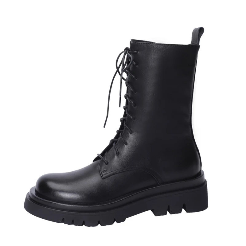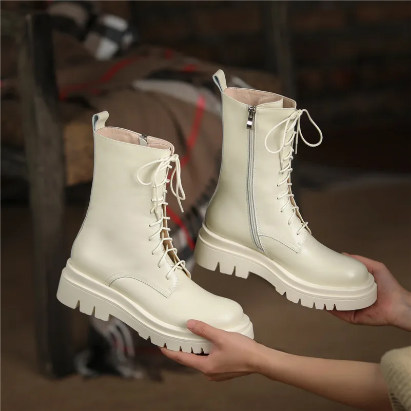 Полусапожки Meotina, из натуральной кожи, на высоком каблуке, из мотоциклетные женские ботинки шерсти, на платформе, на шнуровке, на молнии, 42