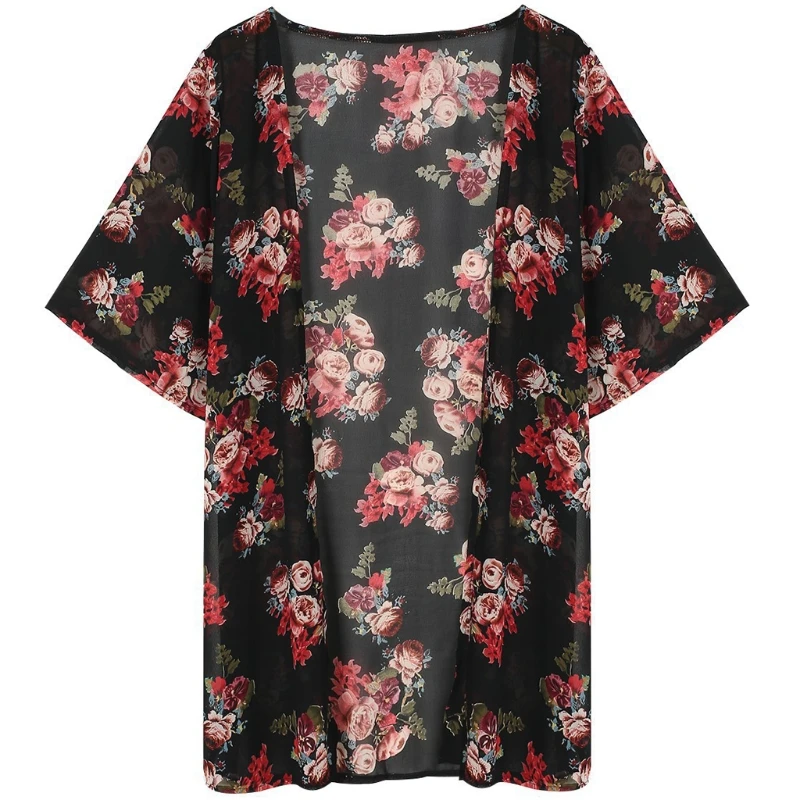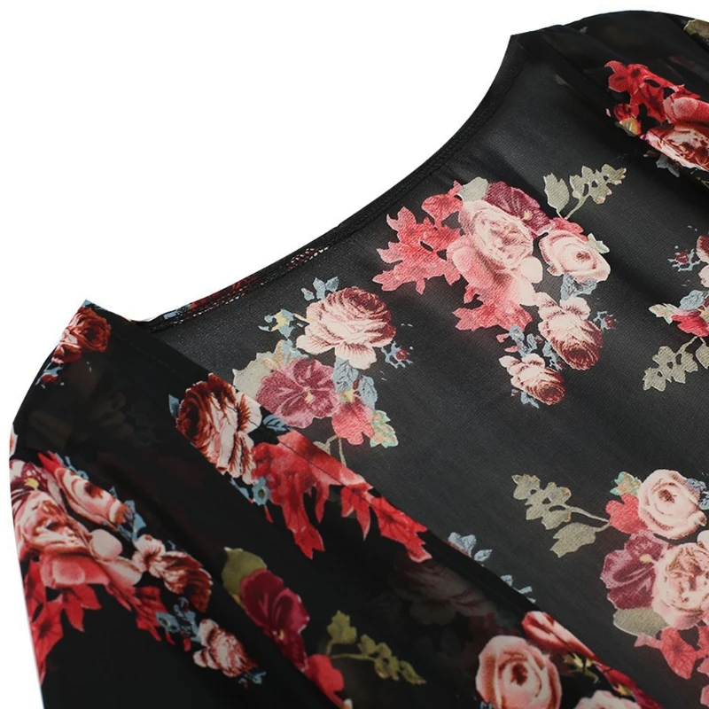 Женский Винтажный Длинный кардиган-кимоно, шифоновая Свободная блузка с цветочным принтом на лето