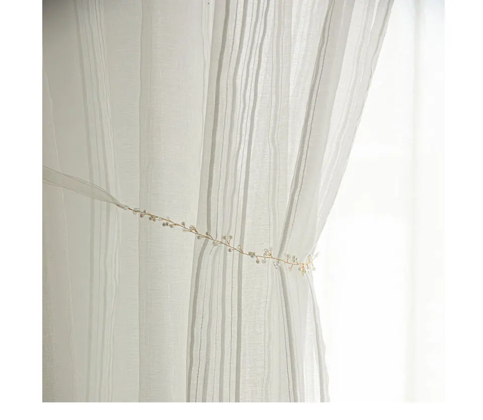 Современные льняные тюлевые занавески, оконные занавески для гостиной, спальни, в полоску, белые прозрачные вуали, занавески для кухни, затемняющие двери на заказ