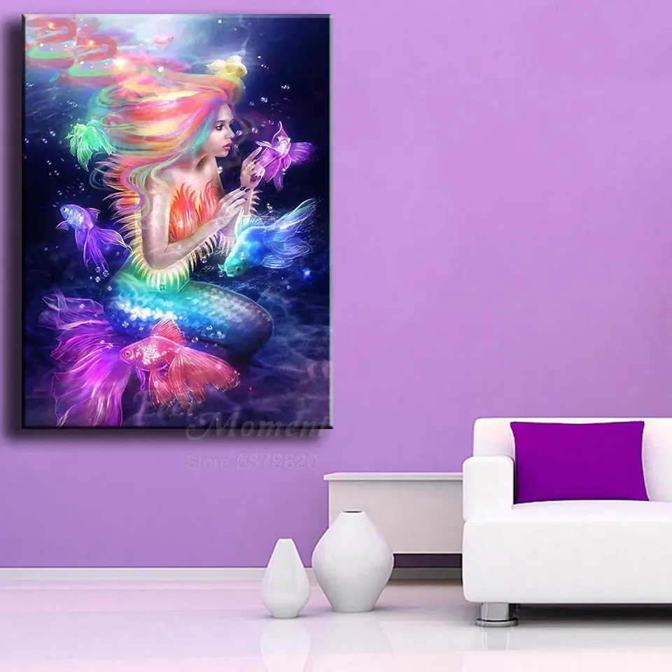 Когда-либо в настоящий момент Алмазная вышивка Картины изображением русалки, купальный костюм арт Настенная картина без рамки из Стразы для отдыха дома 5L1164