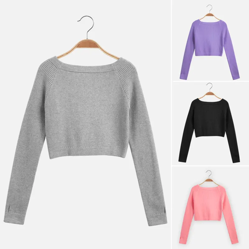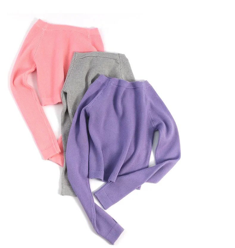 Свитер для девочек-подростков, Мягкий трикотажный эластичный пуловер с длинным рукавом и плоскими плечами для танцев на осень и зиму