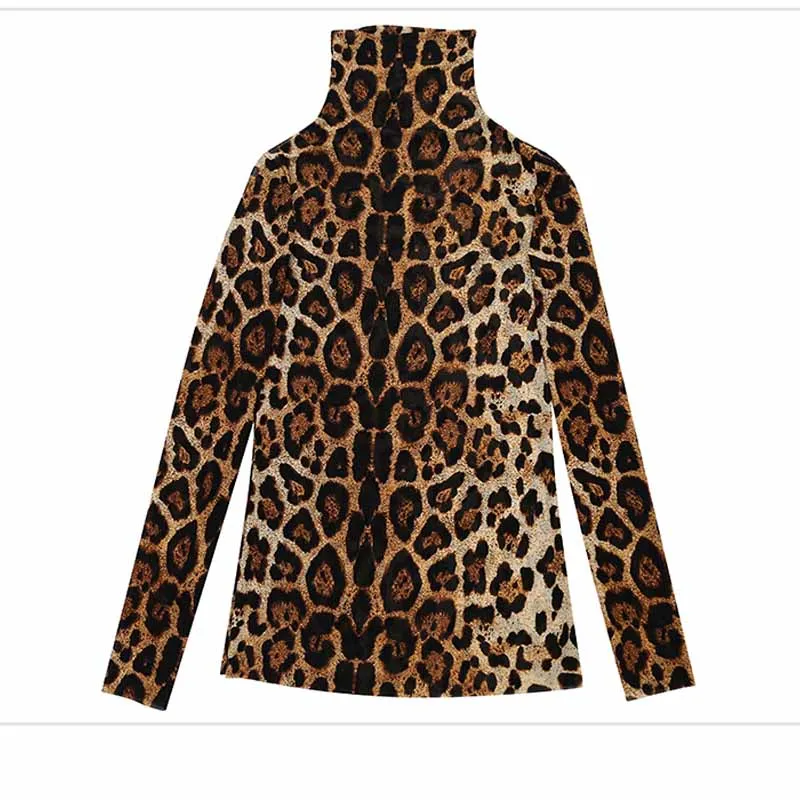 Модные леопардовые элегантные размера плюс топы с высоким, плотно облегающим шею воротником, рубашка для девушек OL вечерние Топ для женщин с длинным рукавом Блузка уличной Blusas 7704 50