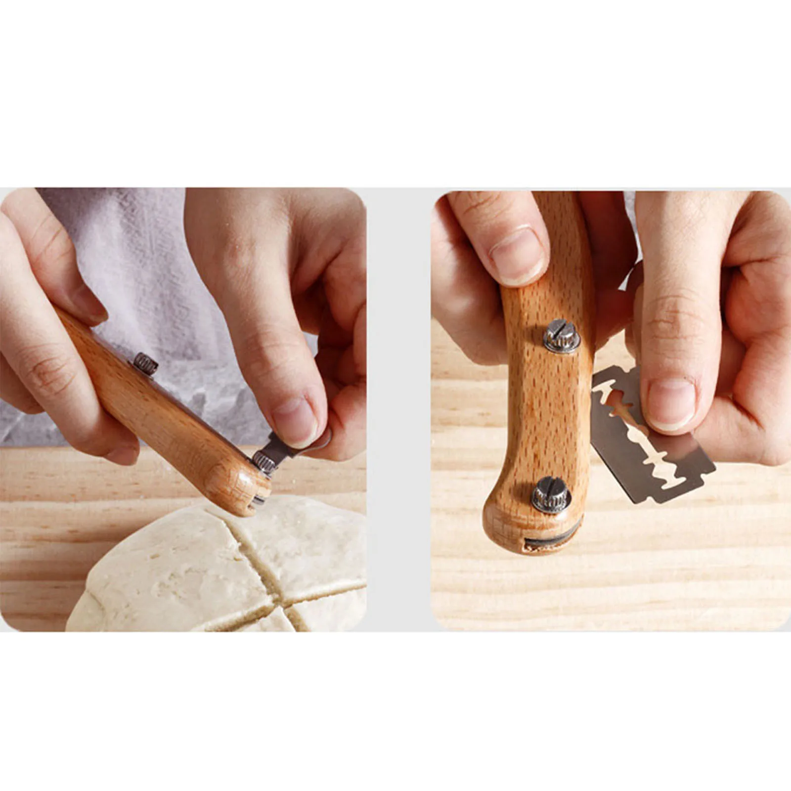 Деревянный нож для хлеба, кухонные инструменты, скребок из нержавеющей стали, нож для хлебаслайсеррезак для теста, лезвия и крышка