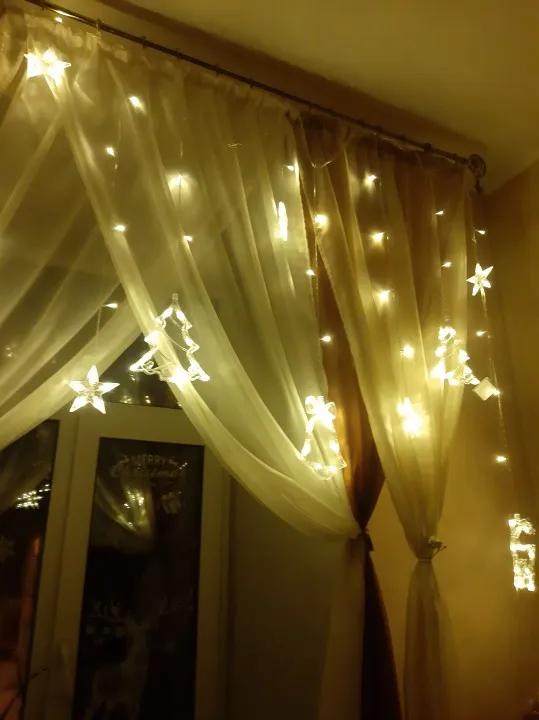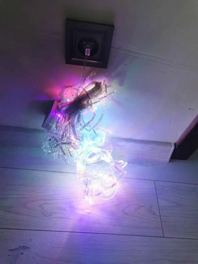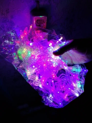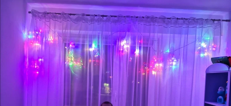 Гирлянда очень красивая в окне, она очень эффектная и имеет различные цвета вспышек. Моя дочь любит их, она очень рада.