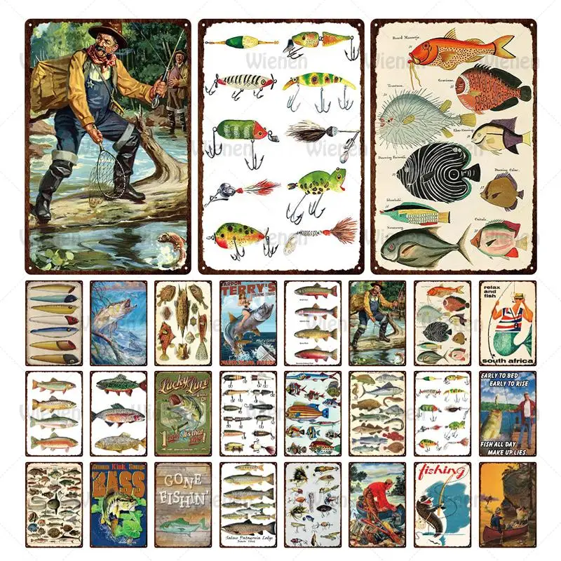 Металлическая вывеска в стиле ретро рыбалки для разных рыбок, жестя...