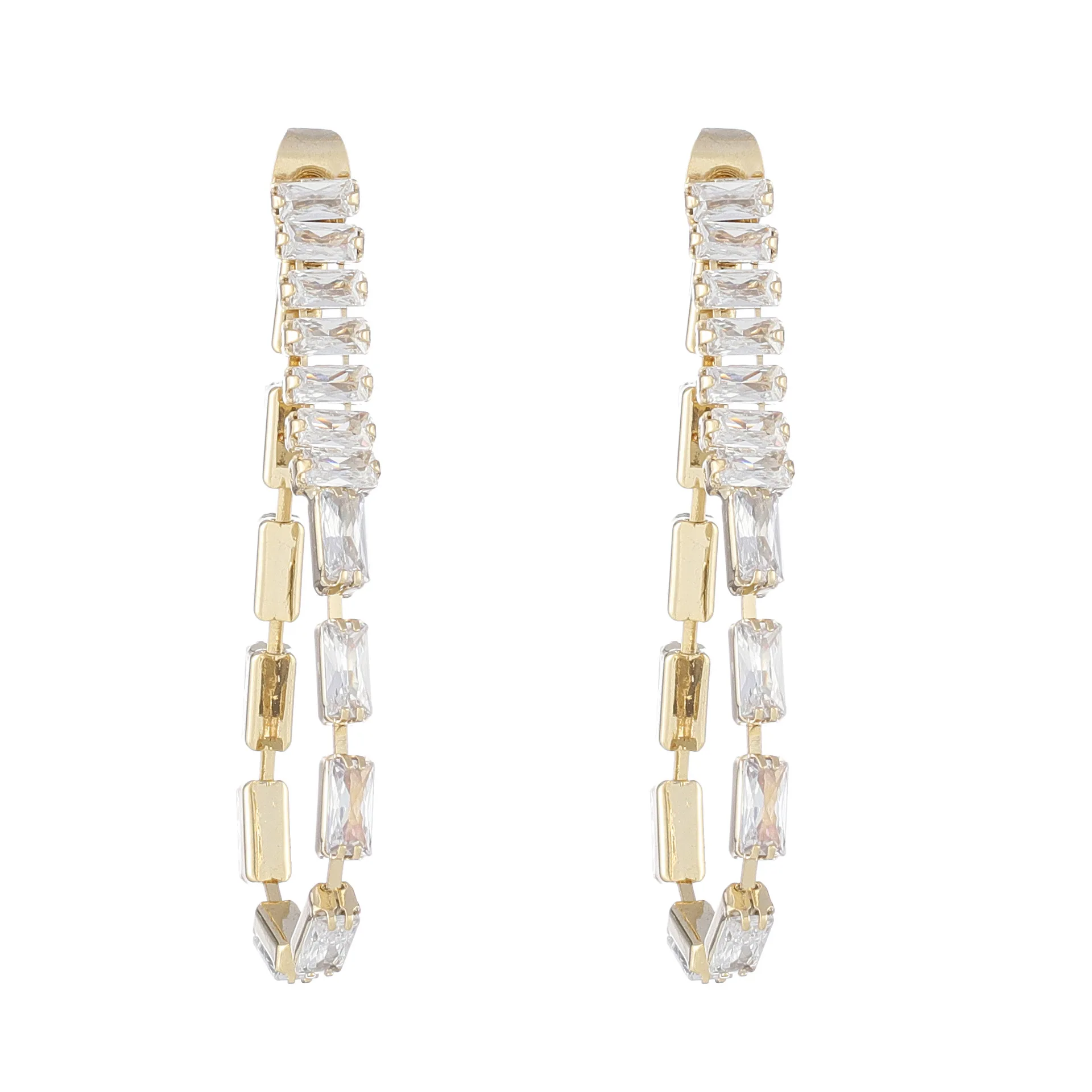Простые темпераментные циркониевые золотые длинные висячие серьги с...