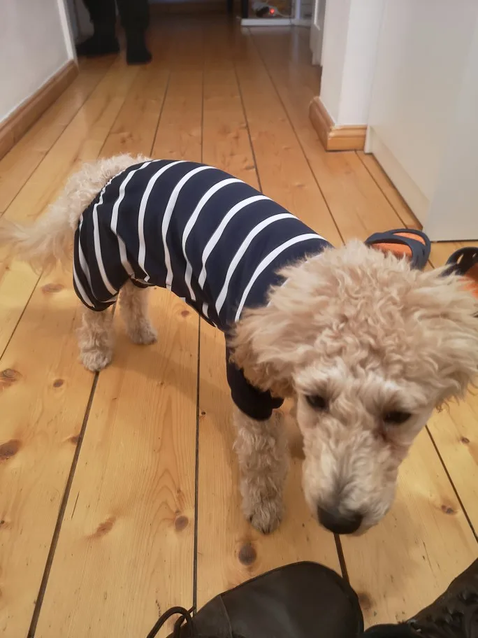 Он отлично подходит для собаки, и она оставляет его на себе. Выглядит так, будто он будет хорошо держать. Спасибо!