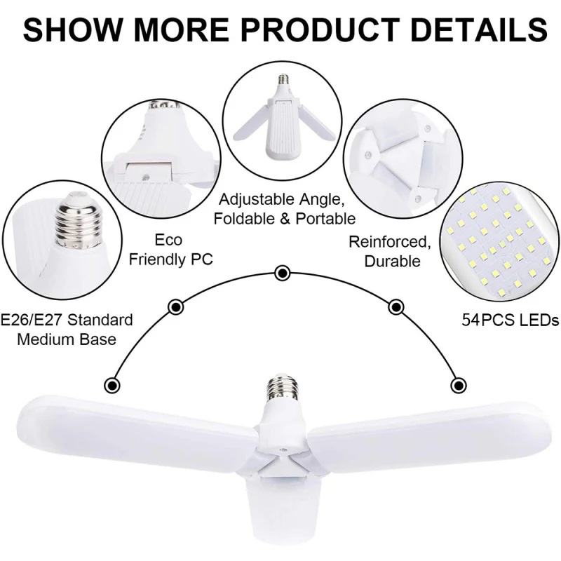 -Супер яркий светодиодный светильник для гаража s: 30 Вт Светодиодный светильник для гаража приносит вам ультра яркий 3000LM. С 3 ультра-яркая подсветка с регулируемый светодиодный головки для вашего удобства, чтобы отрегулировать угол светильник ориентироваться в зоне вы работаете. Яркий дневной свет для вашего гаража и kicthen, обеспечивая лучший опыт внутреннего освещения.