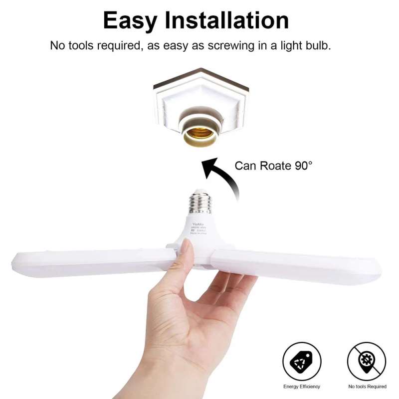Светодиодный светильник для гаража, супер яркий светильник 40 Вт, лампы освещения 4000 лм, 3-листный деформируемый потолочный гаражный светильник, промышленсветильник ильник для магазина