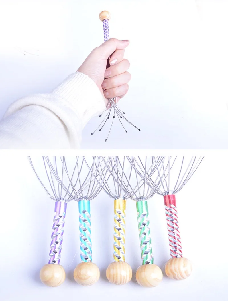 Массажер для расслабления волос со стальными шариками, 1 шт., расслабляющий массажер для головы и шеи на 12 пальцев, спа-массаж Скальпа, снятие стресса, массажер для головы и врача