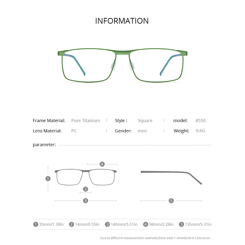 Номер модели8550 2020 New High Quality Pure Titan Korea Japan Thailand Eye Glasses