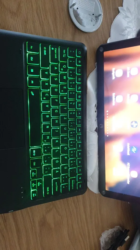 Крайне редко оставляю комментарии о полученном товаре. Все как на картинке. Даже на картинке видно, что клавиша Y и Z перепутаны местами. Проблем нет, аккуратно снял, аккуратно поставил на место. Русской ракладки нет. Наклейки в помощь. Проверил на планшете, положение русских и английских кнопок при печати та же самая, что на моем ноутбуке. А вот с символами... Проверил, но особо не заморачивался. Они не работают так, как указаны на клавиатуре. Но это мелочи, опять таки, наклейки в помощь. Клава с подствекой, подсветка регулируется. чехол выглядит тоже неплохо, тактильно ощущается приятно. Кто сомневается, посмотрите внимательно картинки - фотки. Все точно так же, как в живую.