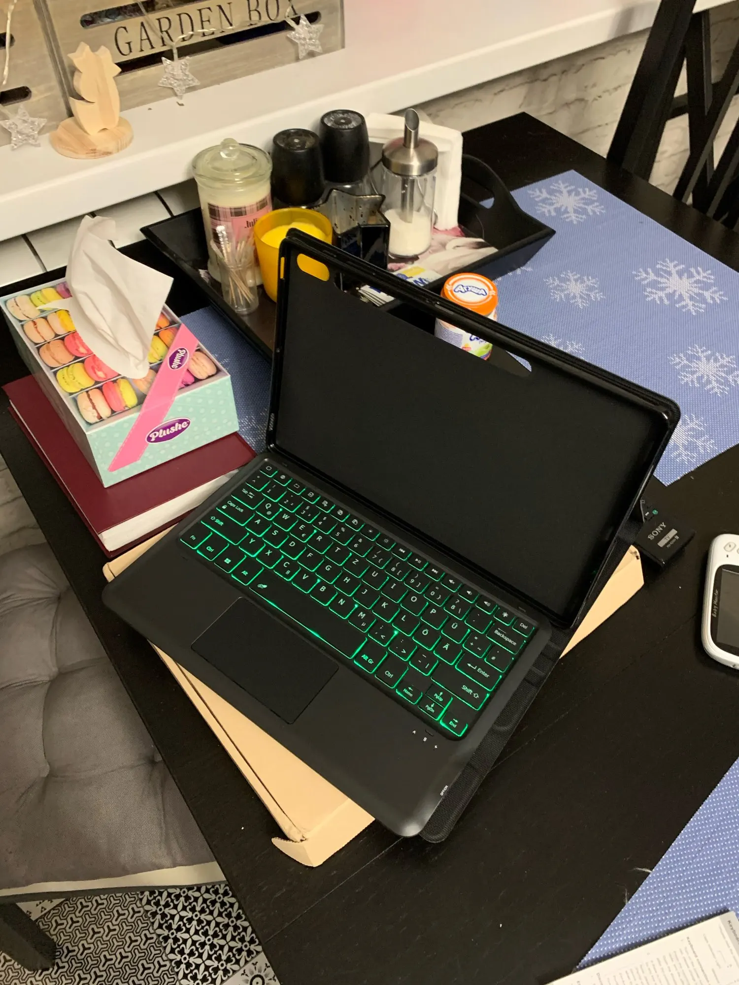 Чехол довольно не лёгкий, по качеству вполне на свою цену, подсветка приятная, но единственное пока не нашёл как её полностью отключить. Клавиатура по ощущениям как у бюджетного ноута