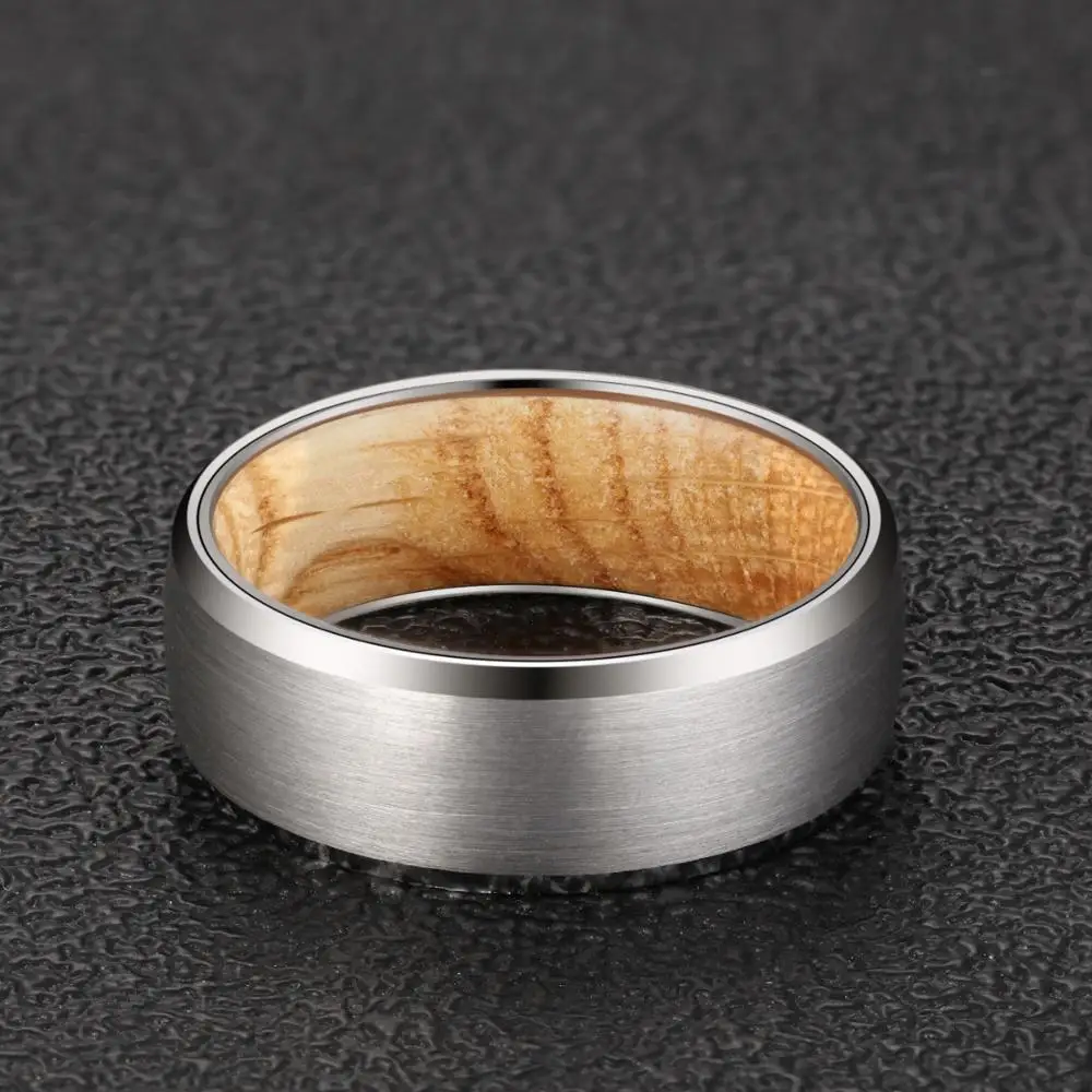 Материал: древесина вольфрама и вискиОтделка: матоваяШирина: 8 ммЦвет: серебристыйПодкладка: бочонок для вискиДоступные размеры s: размер 6-12,5, включая половину размера s.Устойчивость к царапинамВодонепроницаемыйВиски баррель дерево инкрустация вольфрамового кольца