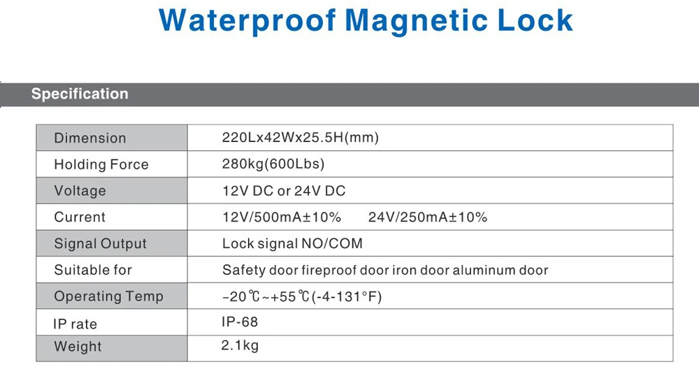 280 кг одна дверь водонепроницаемый электромагнитный замок 12 В, за...
