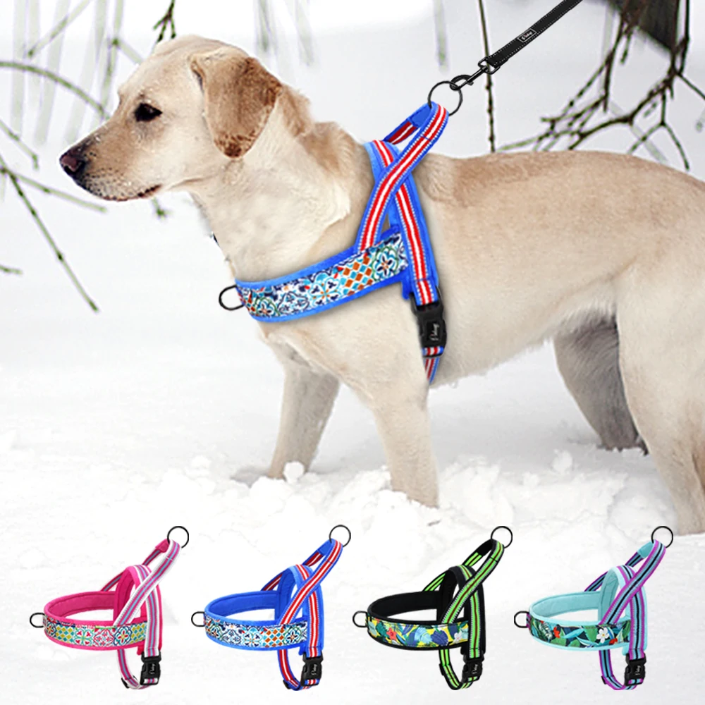 Светоотражающая шлейка для собак, нейлоновая мягкая стеганая жилетка для домашних питомцев, теплая зимняя сбруя для собак, цветной принт, Питбуль, маленькие и большие собаки с ручкой