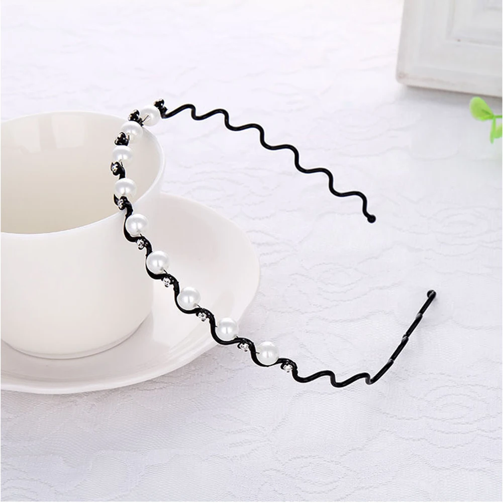 Ободок для волос с жемчугом Женский, элегантный обруч с кристаллами, милый модный обруч с жемчужинами, волнистый
