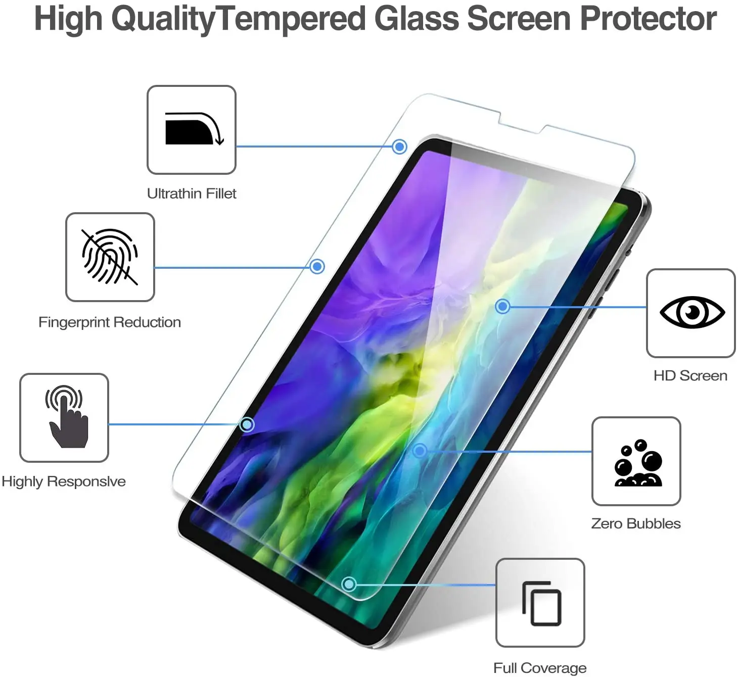 2 шт. закаленное стекло для защиты экрана для Apple IPad Pro 11 дюй...