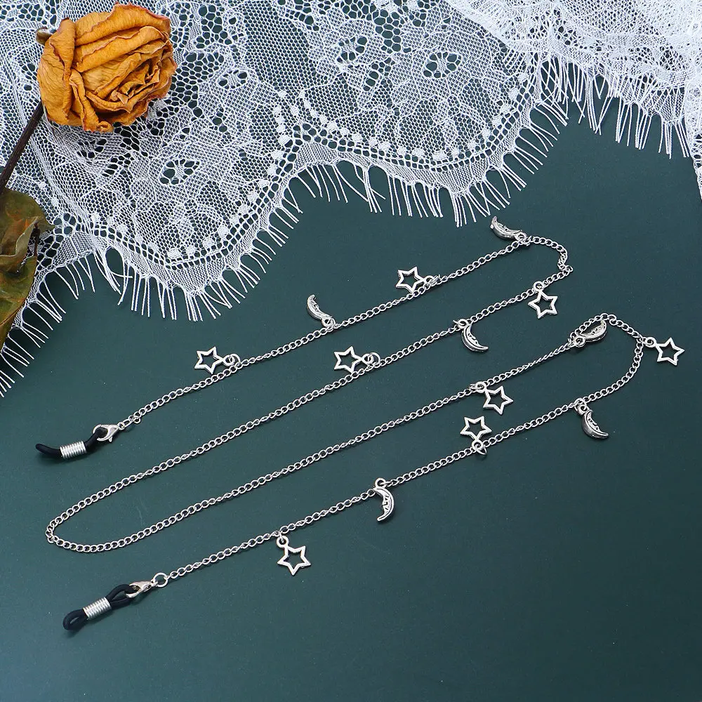 Цепочка для очков, солнцезащитных очков для чтения, цепочка для ожерелья, маски, простая цепочка для очков с полой звездой и луной, 2021