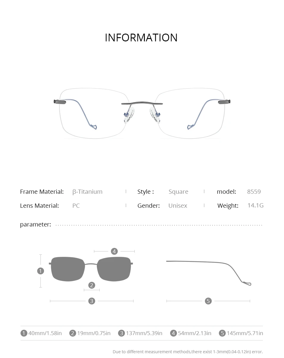 FONEX Мужские и женские очки без оправы, из титанового сплава, с за...