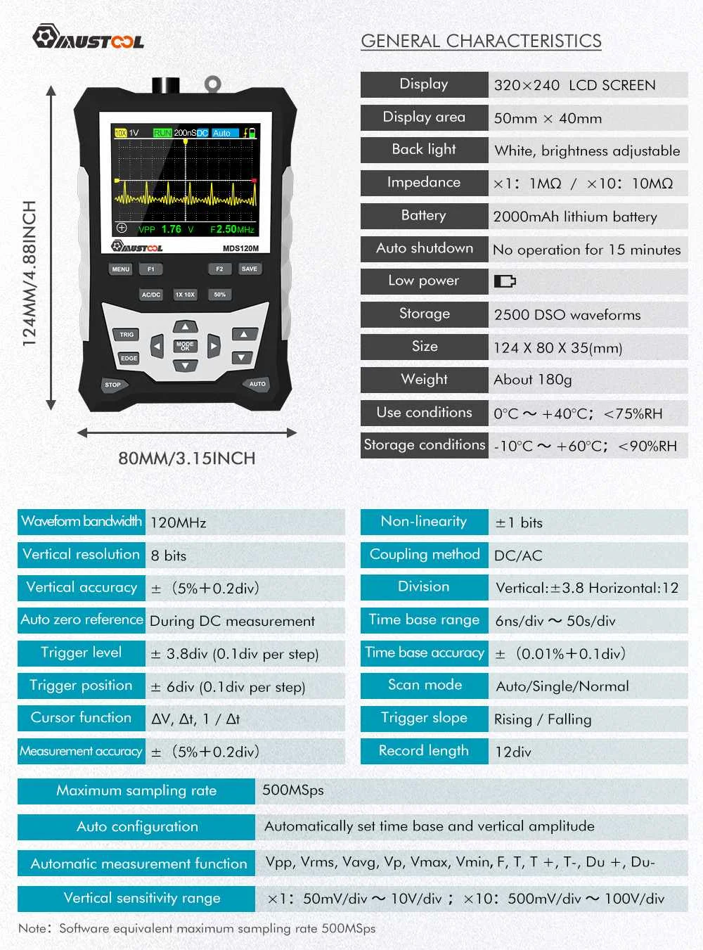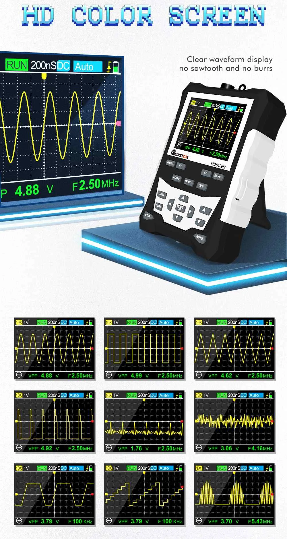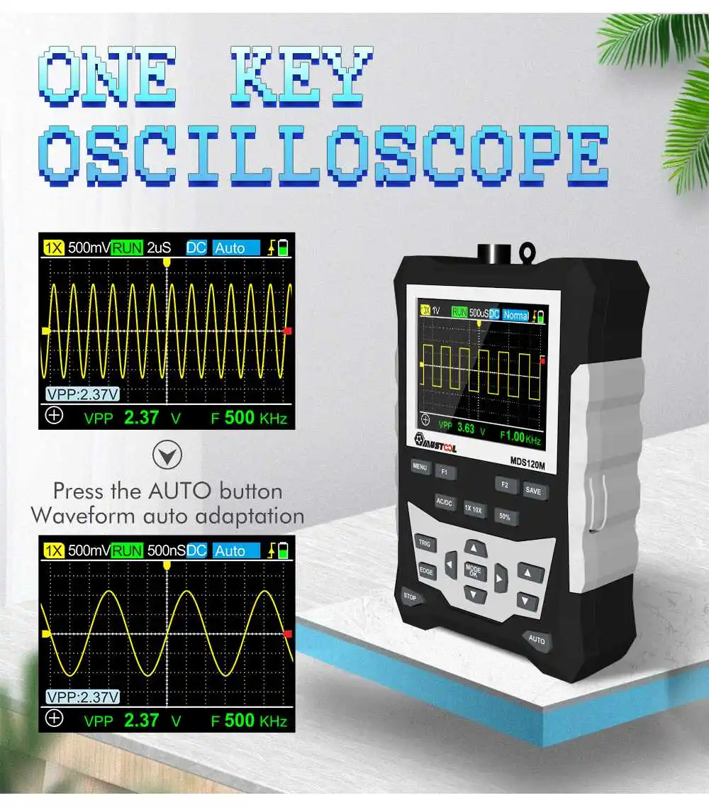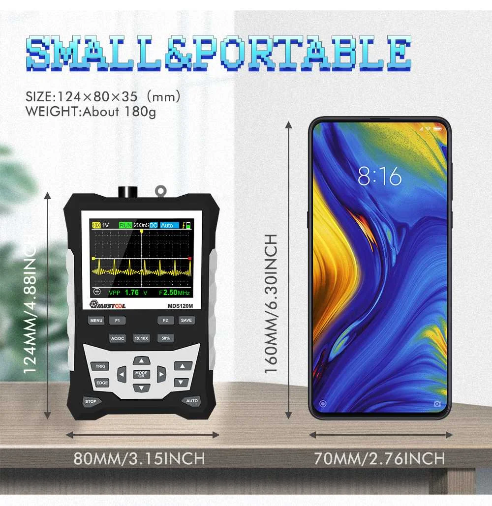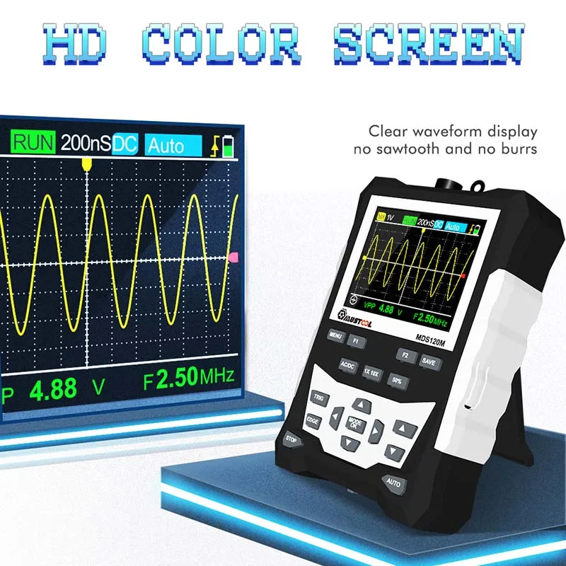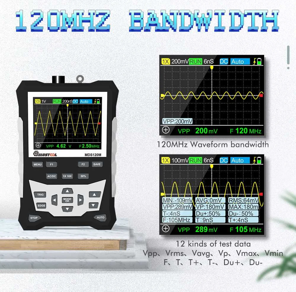 Осциллограф цифровой MUSTOOL MDS120M, 120 МГц, с ЖК-дисплеем и подсветкой