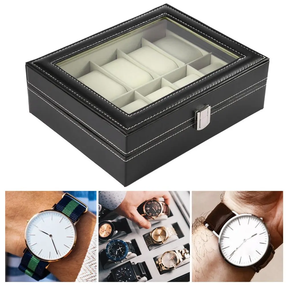 Кожаная шкатулка для хранения часов с 2610 отделениями, органайзер, новый держатель для мужских механических часов, черный чехол для ювелирных изделий, подарочные коробки, чехол